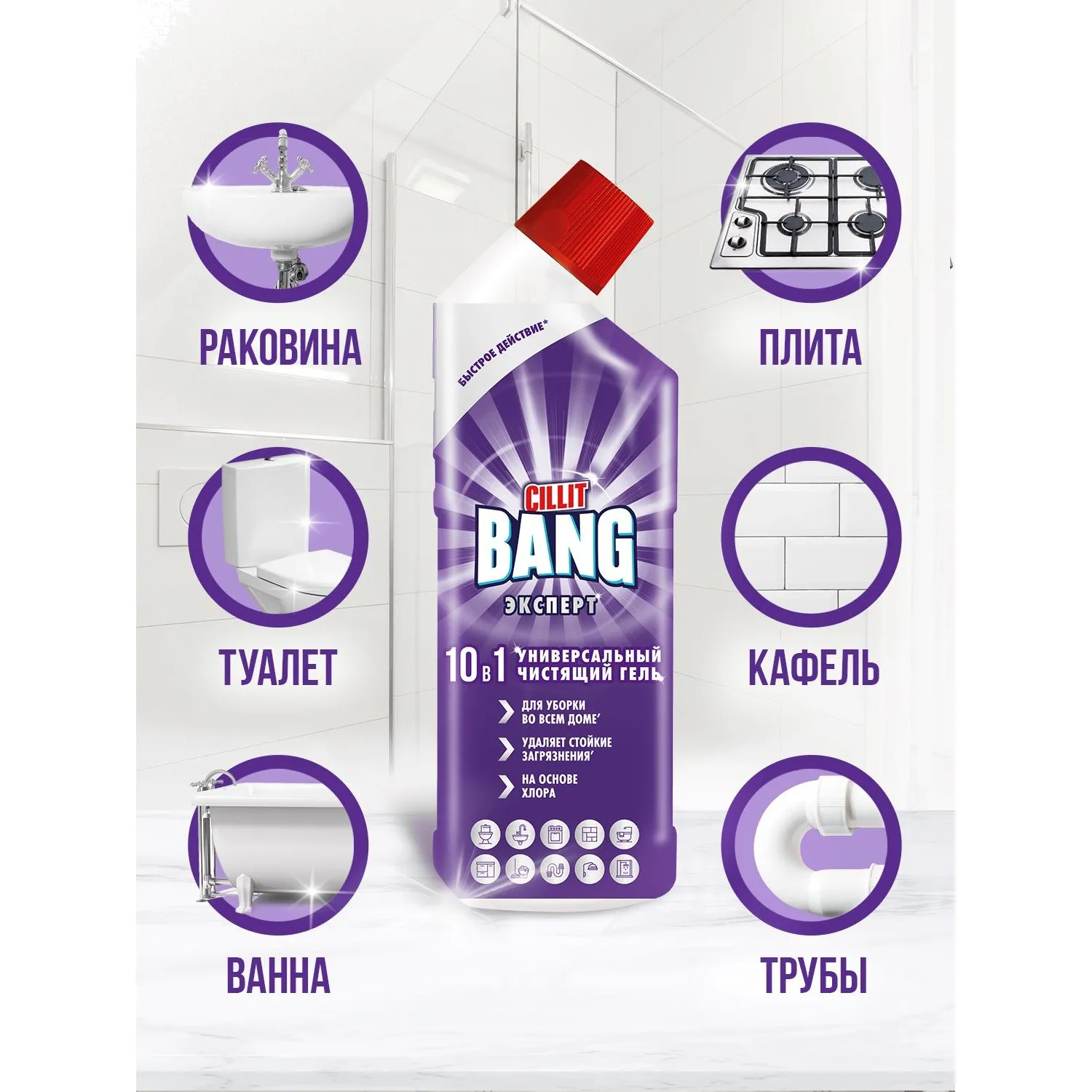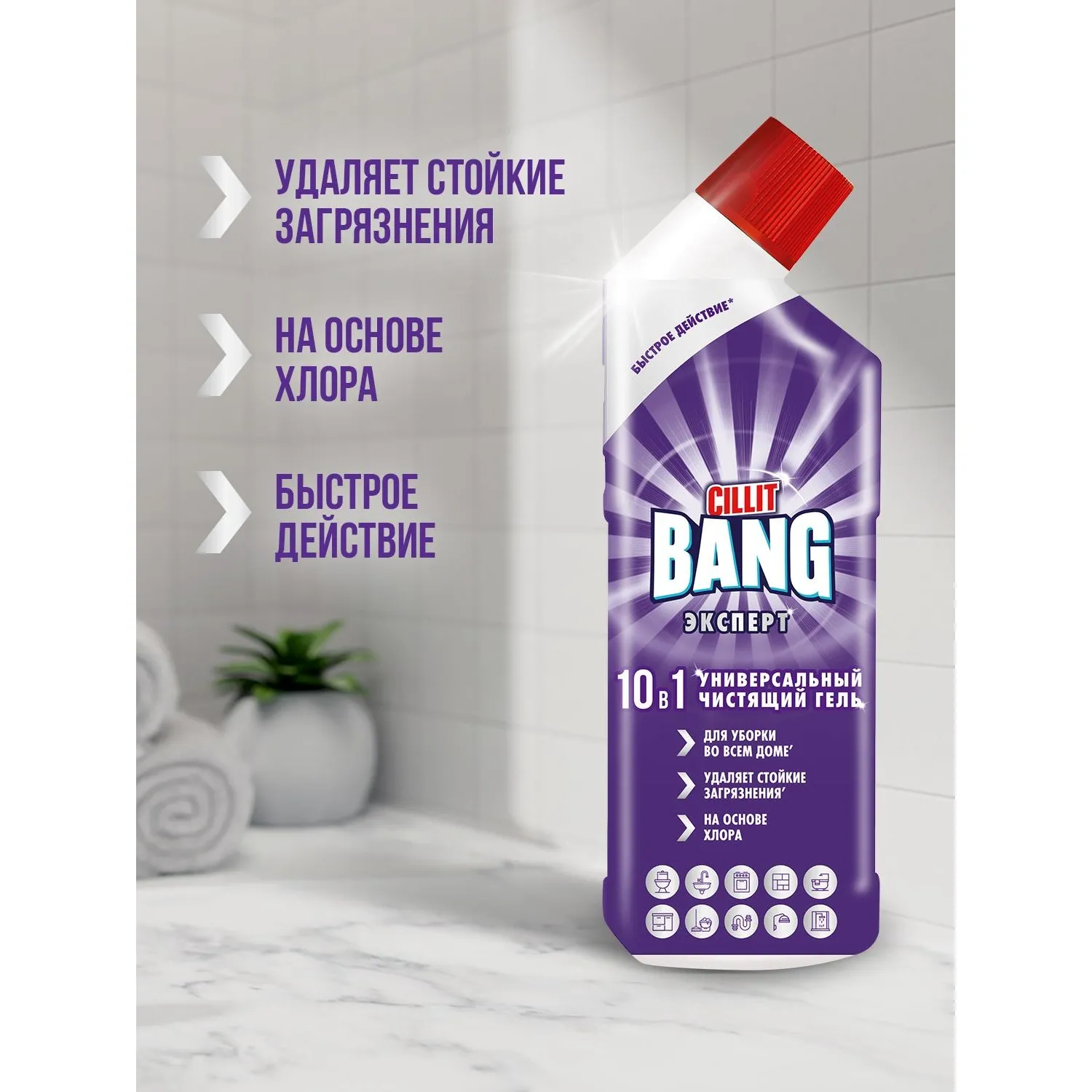 О товаре «Универсальное чистящее средство Cillit Bang гель 10 в 1, 750 мл»
