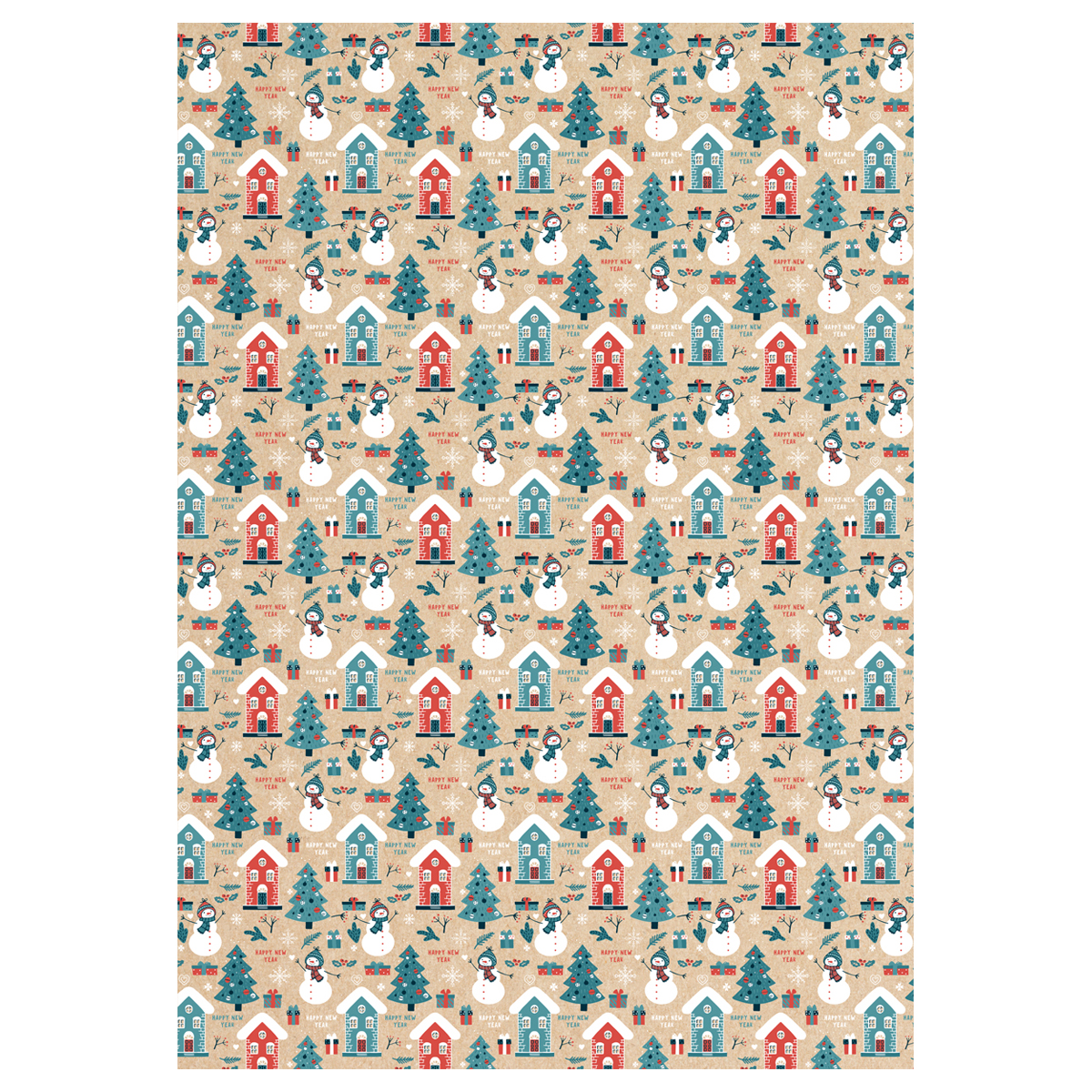Упаковочная бумага крафт 70*100см, MESHU "Christmas tale", 70г/м2