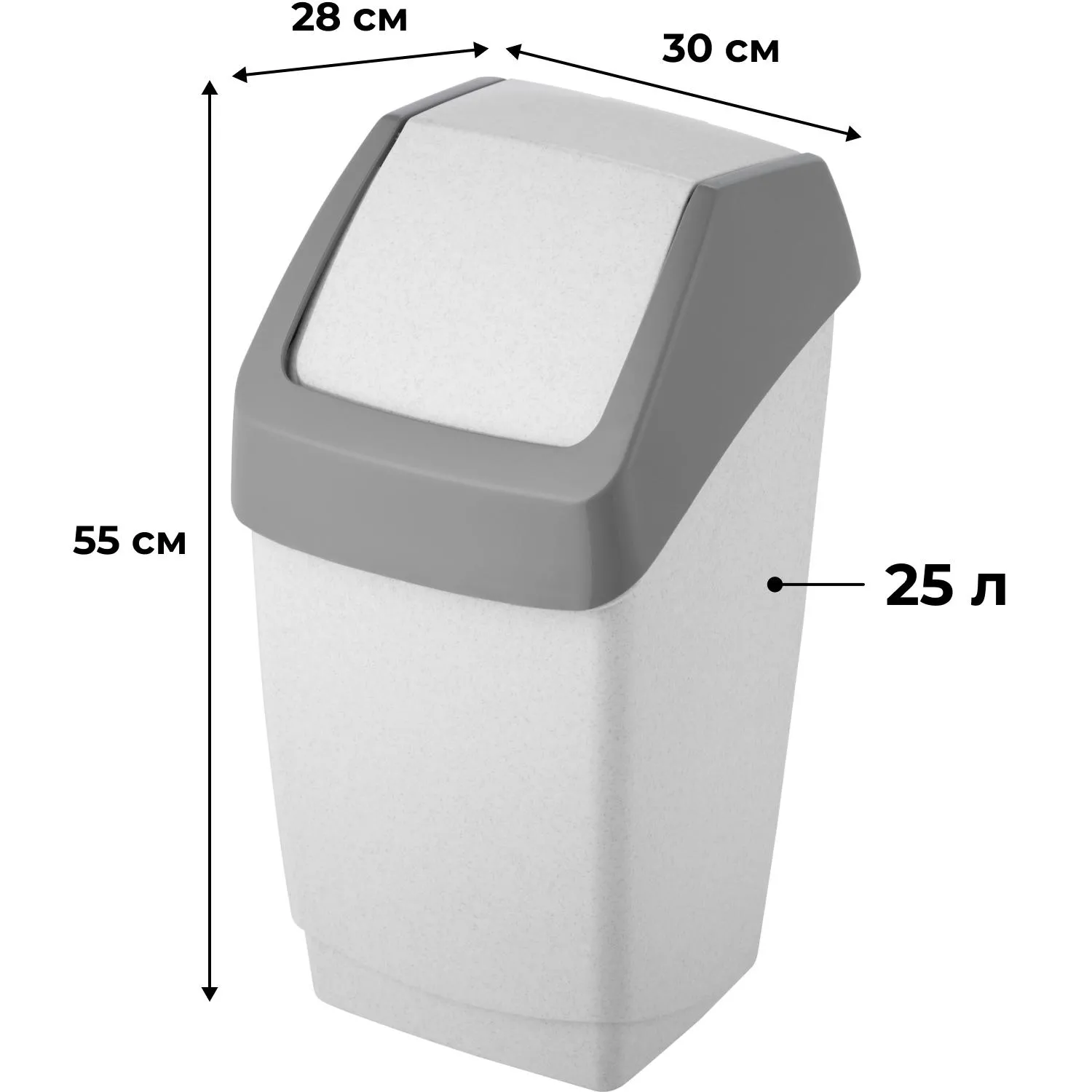 Ведро для мусора «М-пластика» с крышкой-вертушкой выполнено из высококачественного прочного пластика, отвечающего всем нормам экологической безопасности. Урна оснащена крышкой с механизмом-вертушкой. Удобное и практичное решение для сбора мусора. Прост в уходе. Подходит для бытовых и офисных помещений. Размер контейнера: 30×28×55 см. Цвет: серый, черный. Вес: 1.2 кг.