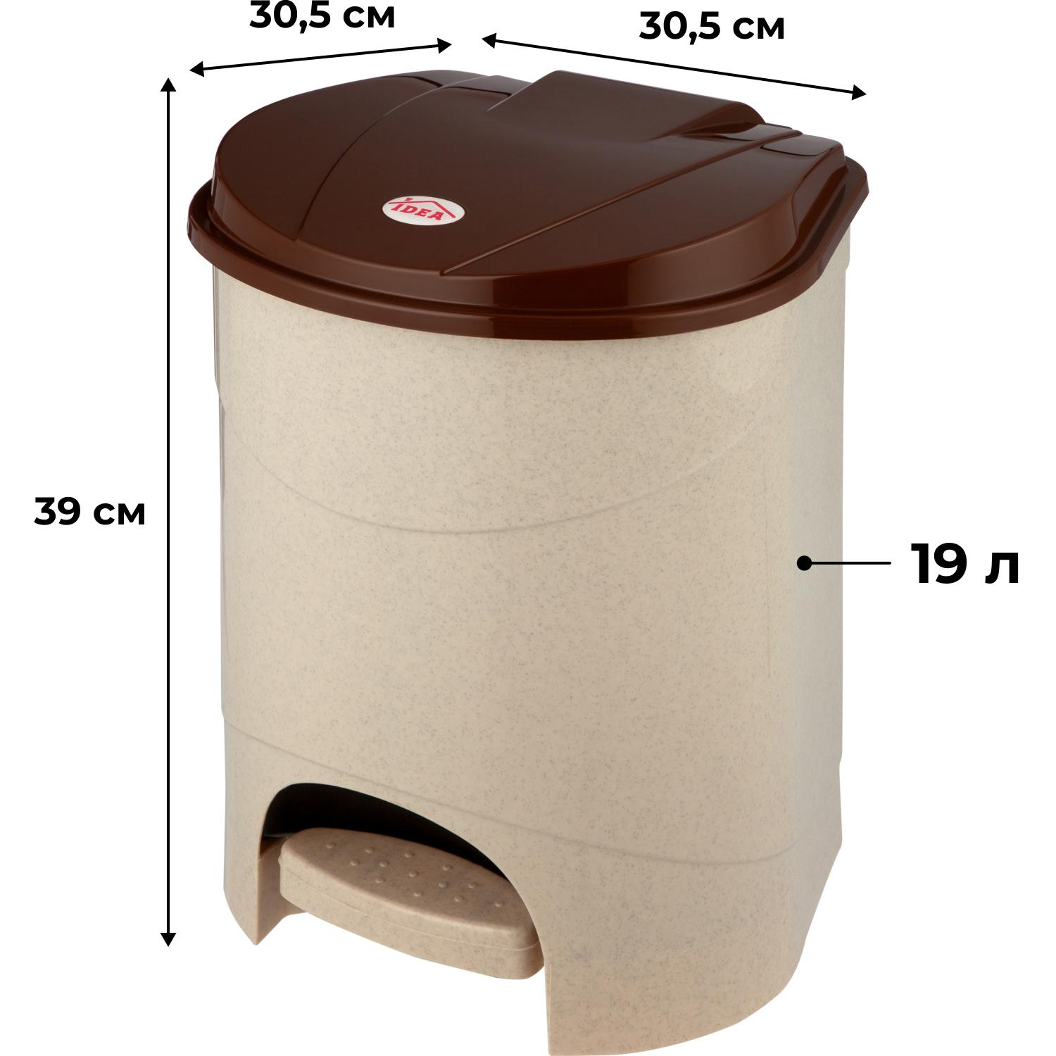 Ведро для мусора с педалью М-пластика 19 л пластик бежевое/коричневое (30.5×30.5×39 см).