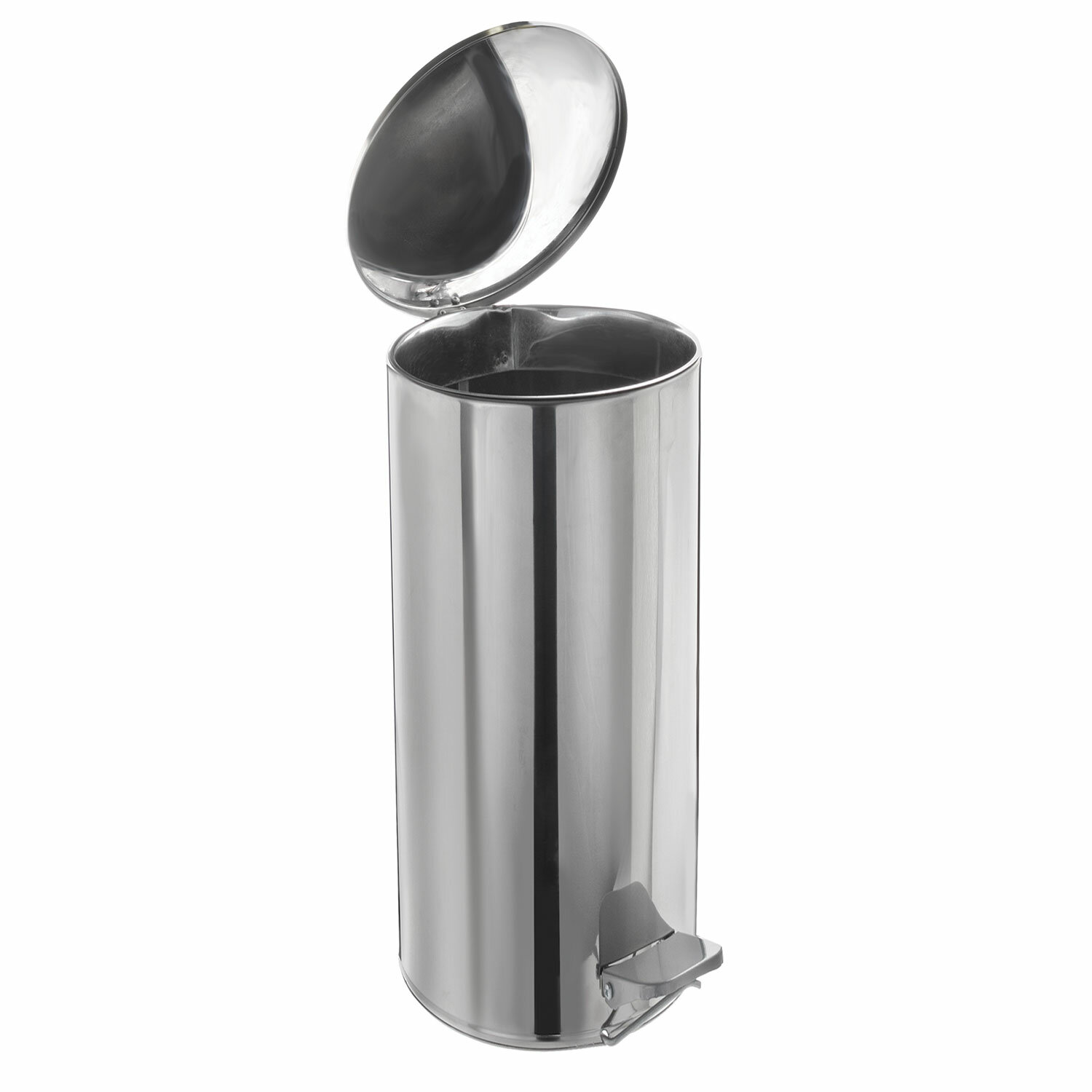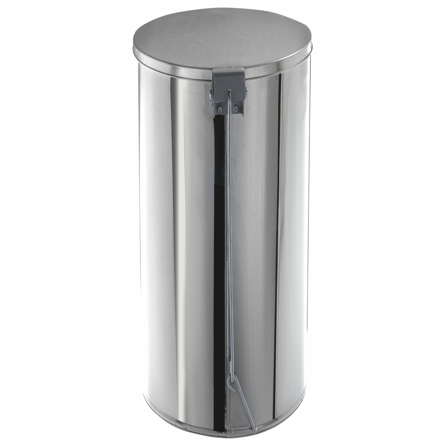 Ведро мусорное 30 л нержавеющая сталь с педалью с крышкой серебристое (60×25×25 см).
