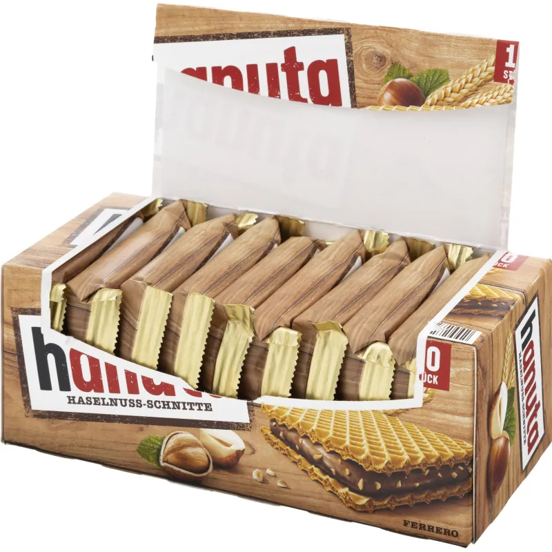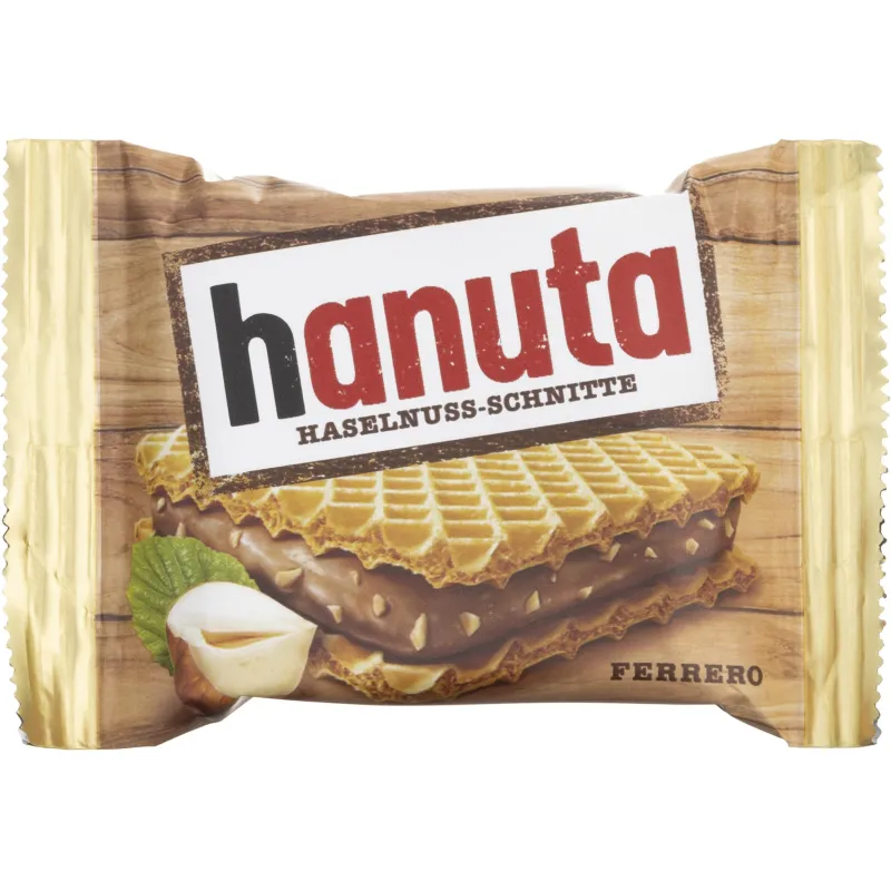 Хрустящие классические вафли Hanuta с нежной шоколадно-ореховой начинкой и кусочками фундука. Продукт в удобной картонной упаковке весом 220 г.