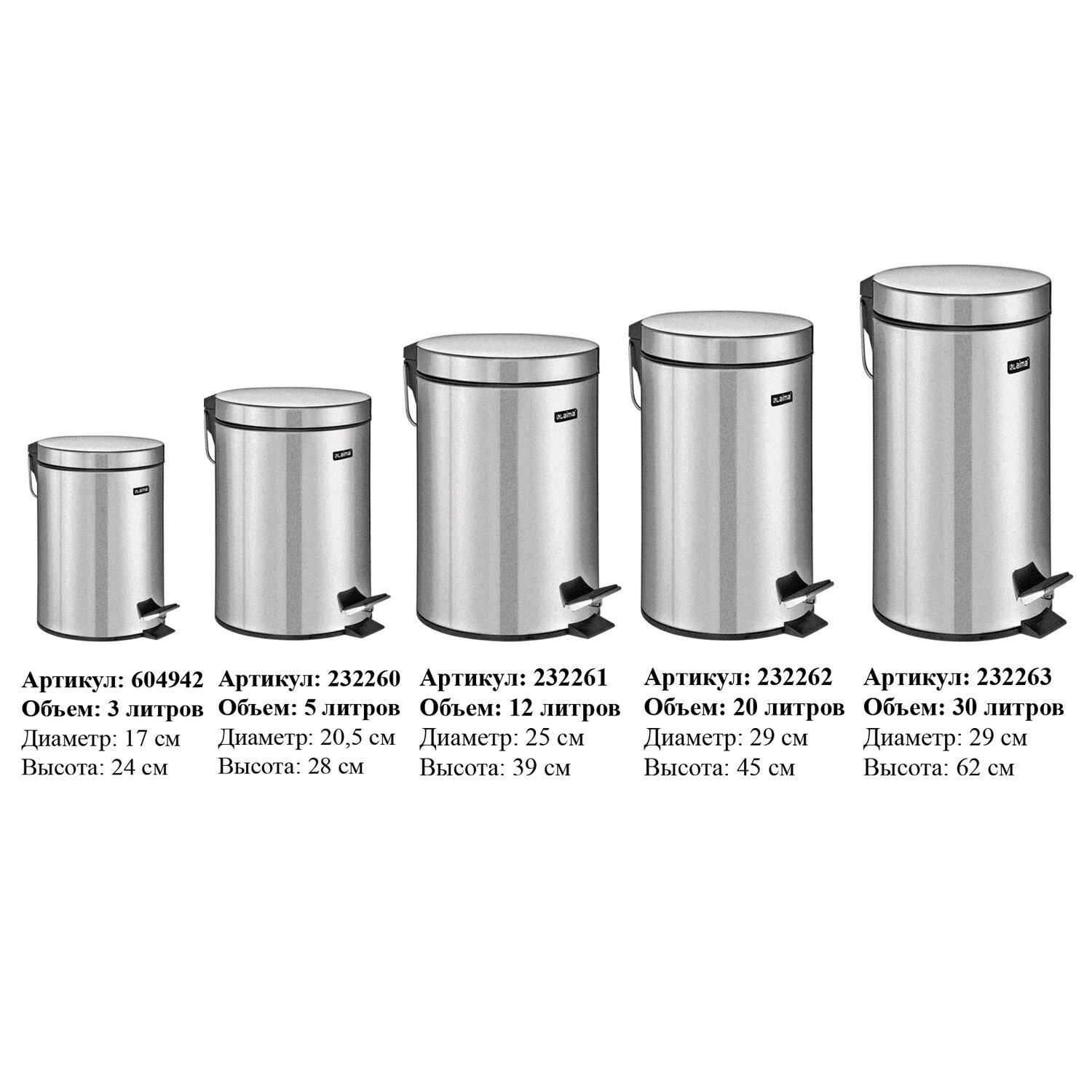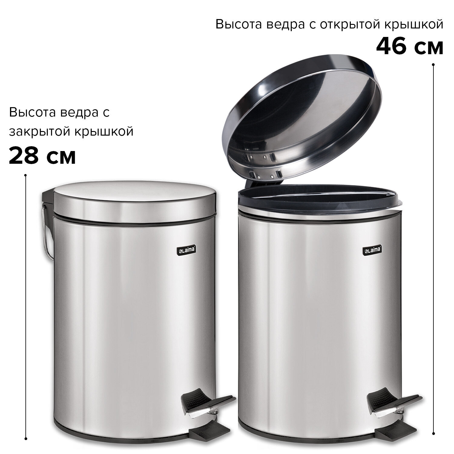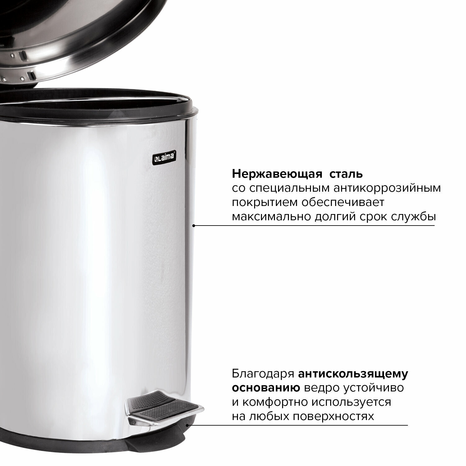 О товаре «Ведро мусорное с педалью 5 литров "Classic", ЗЕРКАЛЬНОЕ, нержавеющая сталь, со съемным внутренним ведром, LAIMA, 232260»