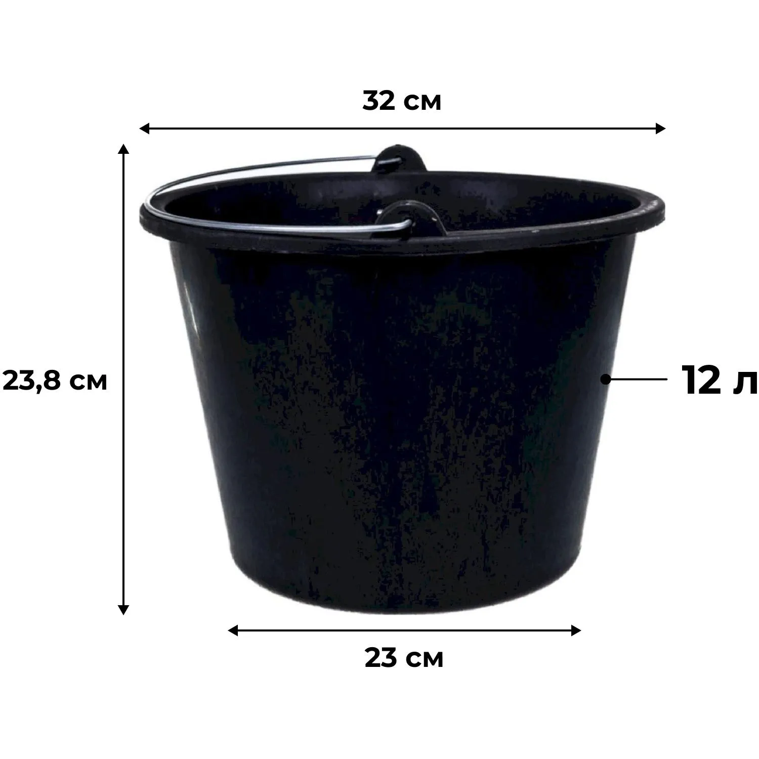 Ведро строительное 12 л пластик чёрное (сливной носик)
