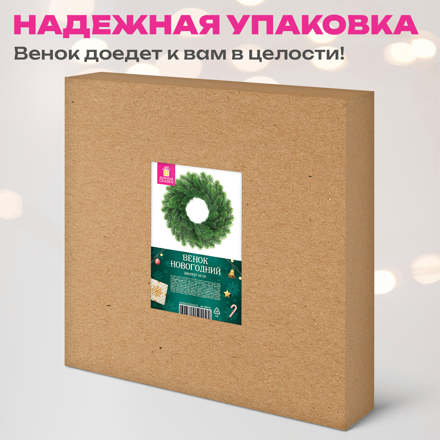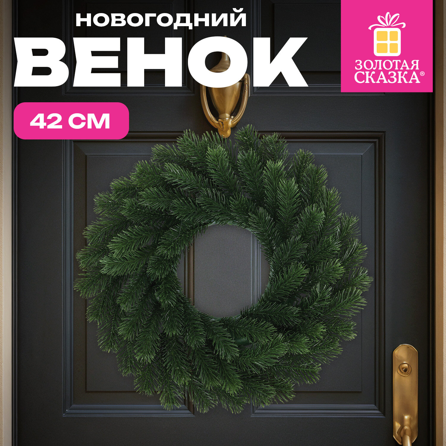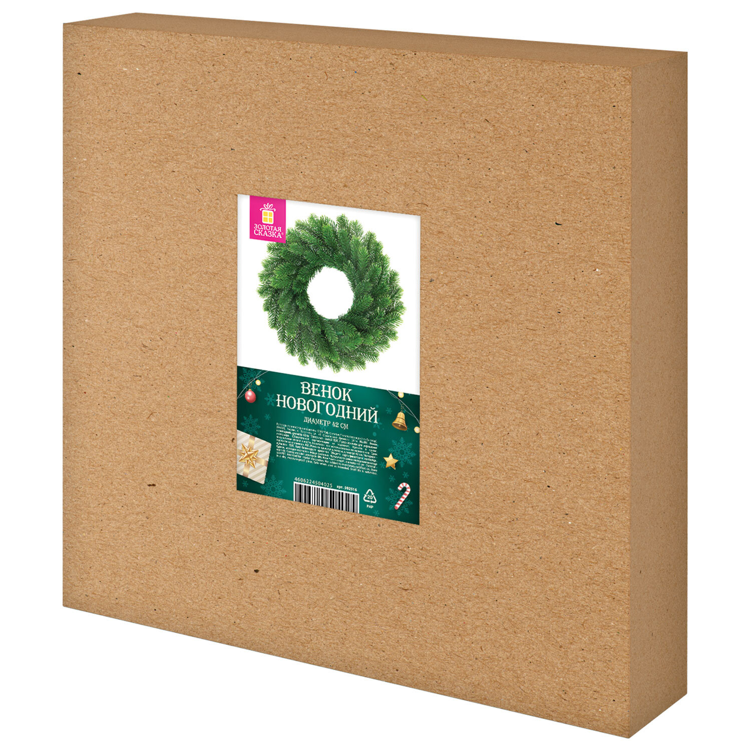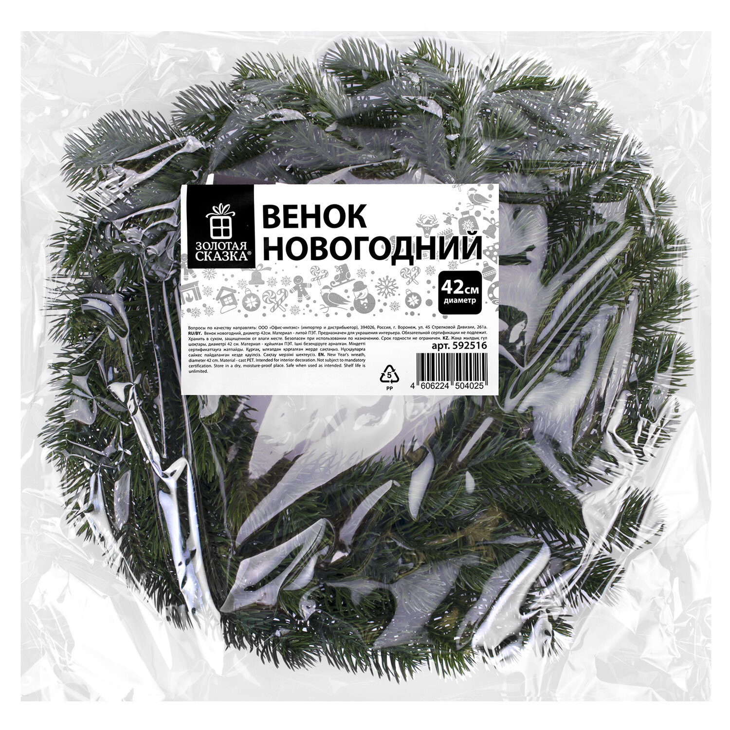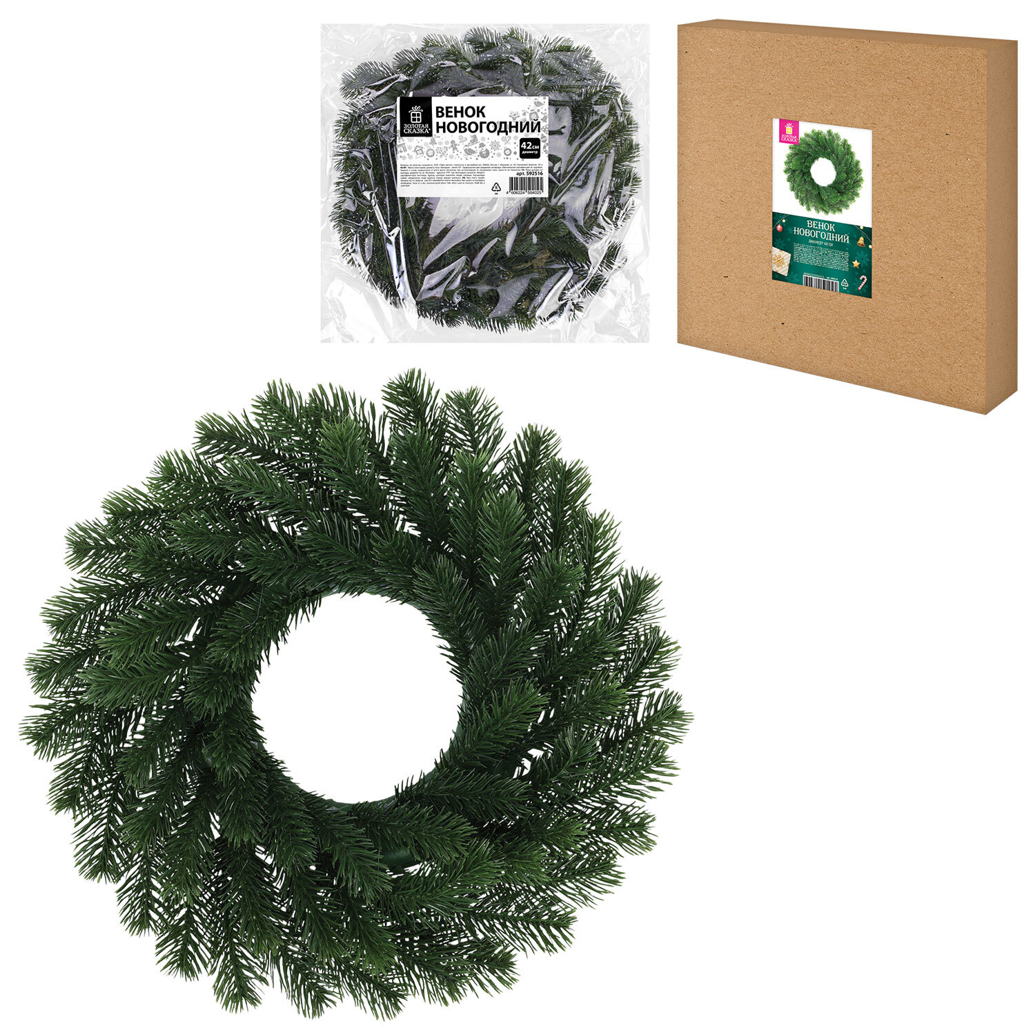 О товаре «Венок новогодний, диаметр 42 см "Волшебство", литой ПЭТ, ЗОЛОТАЯ СКАЗКА, 592516»