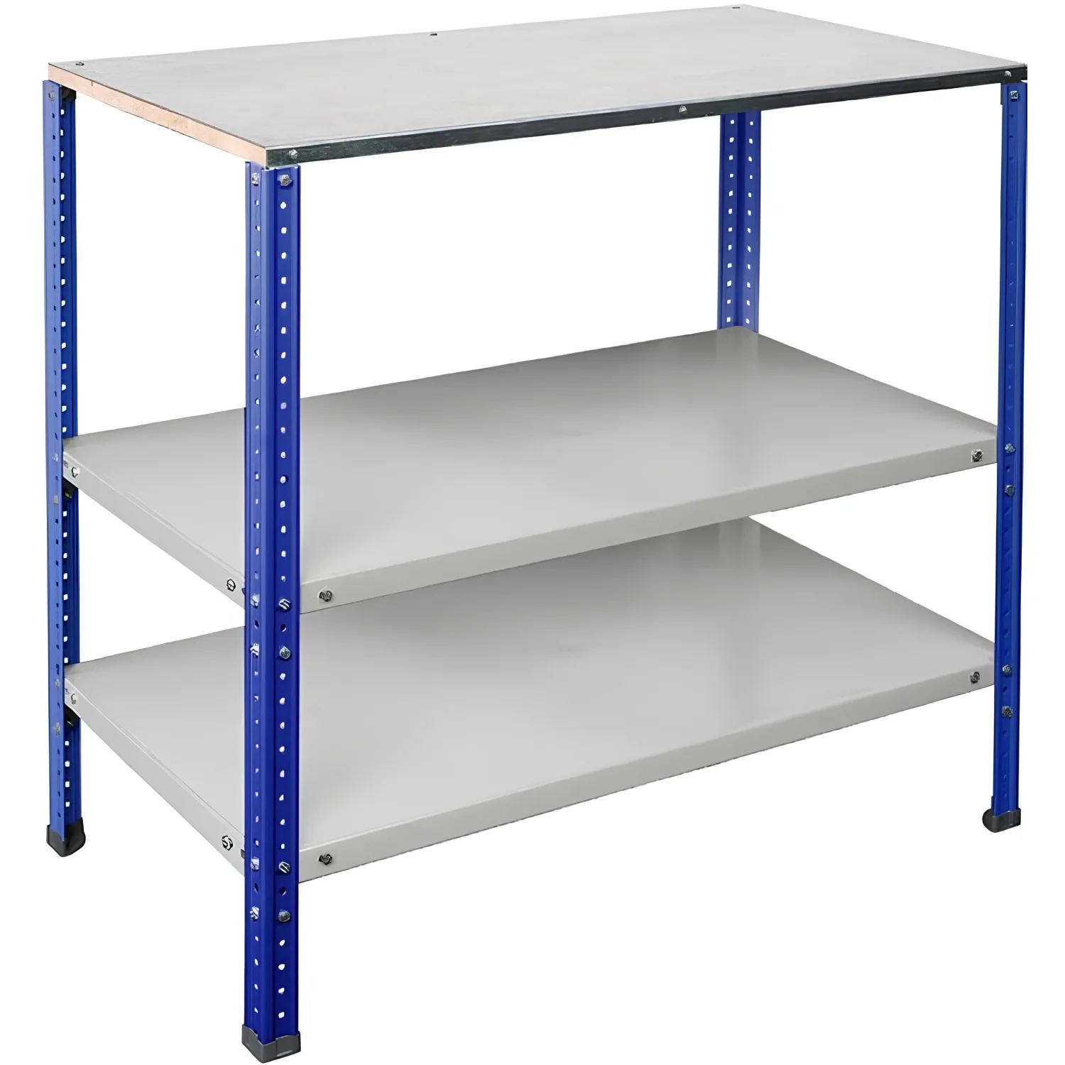 Верстак предназначен для удобной организации рабочего места в гаражах, мастерских, в учебных заведениях, а за счет компактного размера может быть установлен на балконах, в бытовках. Опоры изготовлены из стойки стеллажа MS Hard профиль сечением 40×40 мм, толщина стали — 1,5 мм. Шаг перфорации — 50 мм. Столешница выполнена из мебельного щита дерева (сосна) толщиной 18 мм и накладка из оцинкованного листа металла толщиной 1.2 мм. Нагрузка на столешницу — 300 кг. Нагрузка на полку — 100 кг. Вес изделия: 20 кг. Преимущества: быстрая сборка, удобная упаковка.