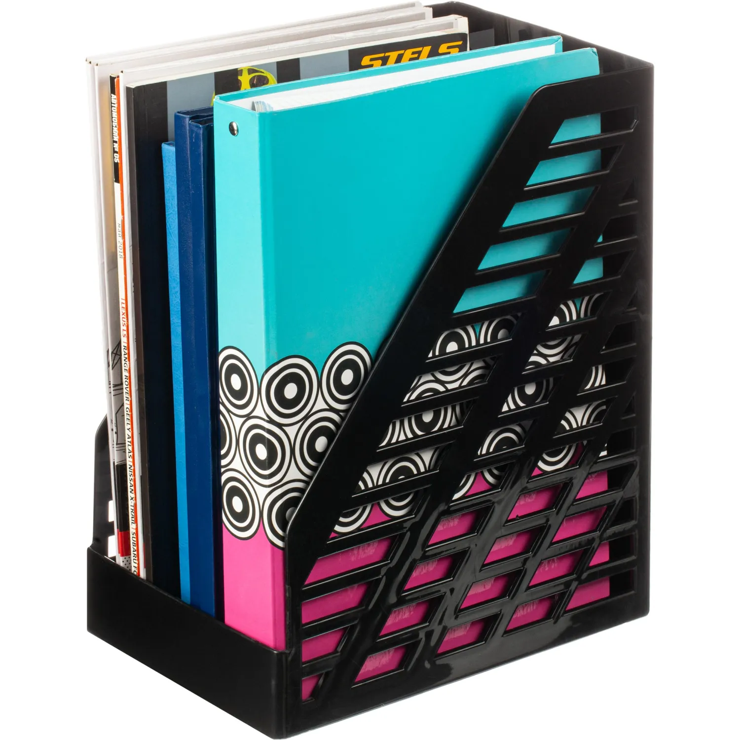 О товаре «Лоток вертикальный для бумаг 160 мм Стамм XXL пластиковый черный»