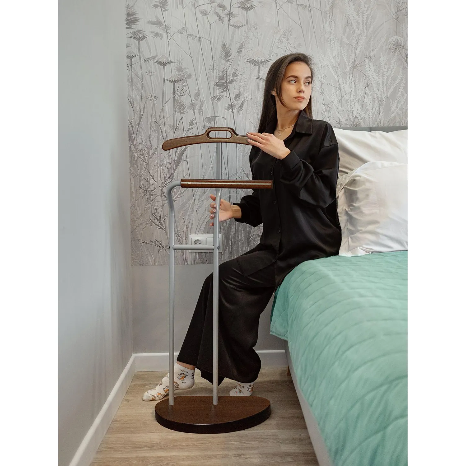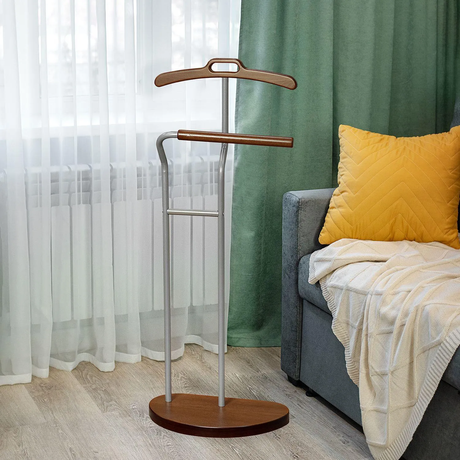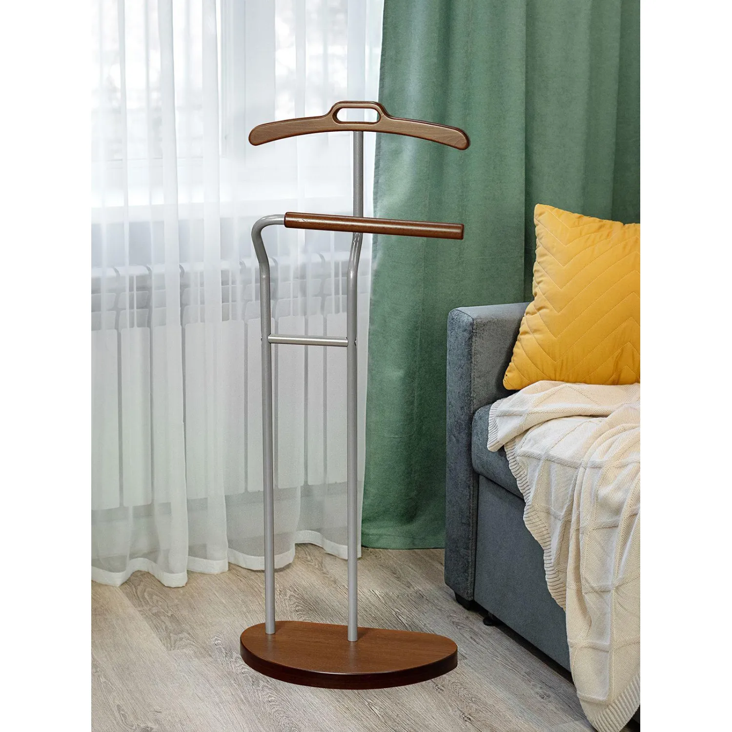 Вешалка костюмная удобная вешалка для костюма в кабинет, прихожую, спальню в темных тонах. Простая, но вместе с тем, удобная и надежная конструкция. Отверстие в плечиках для одежды позволяет удобно разместить галстук, шарф, или ремень. Идеальное сочетание цены и качества, компактная упаковка, легко собирается. Отличный подарок коллеге по работе.