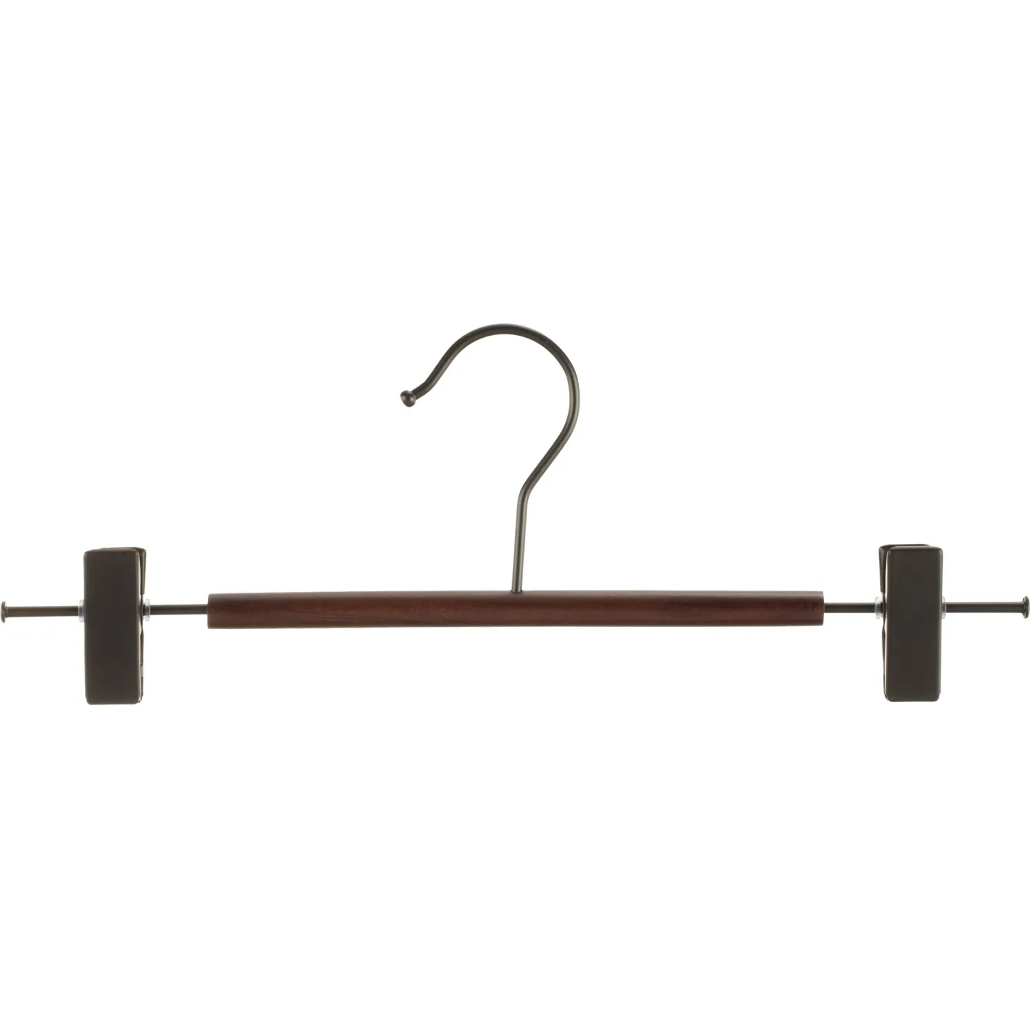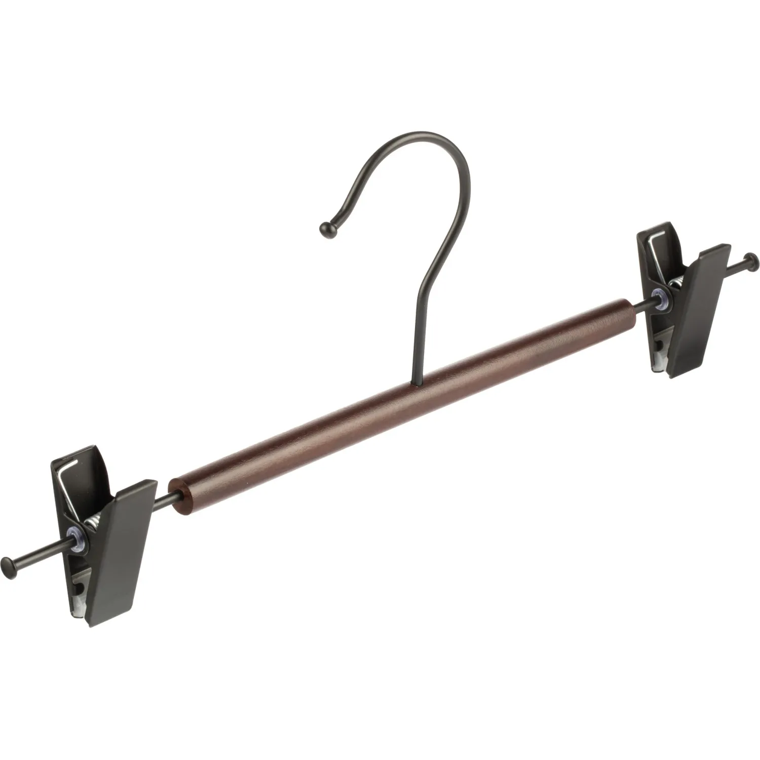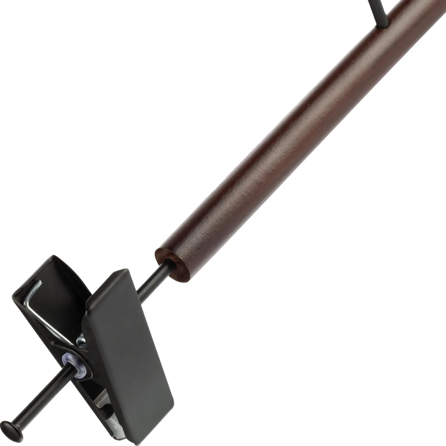 Вешалка Комус Мебель MH011. Вешалка для одежды металлическая с вставкой из дерева (бук), 32 см, плоская, с металлическими клипсами, цвет черный+грецкий орех, крюк металлический. Категория А.