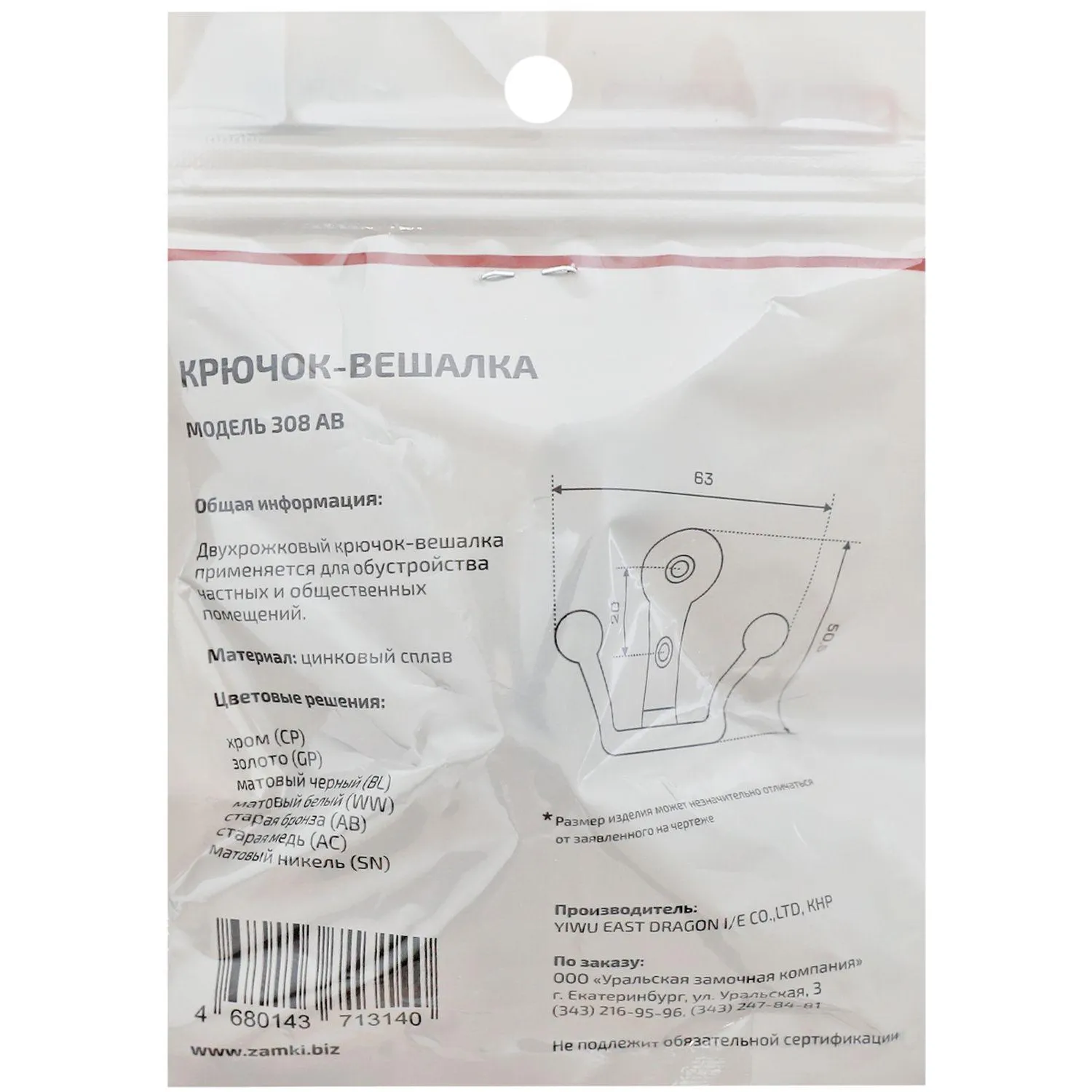 О товаре «Вешалка настенная УЗК_Крючок двухрожковый StahlBuro 308 AB (16134)ст.бронза»