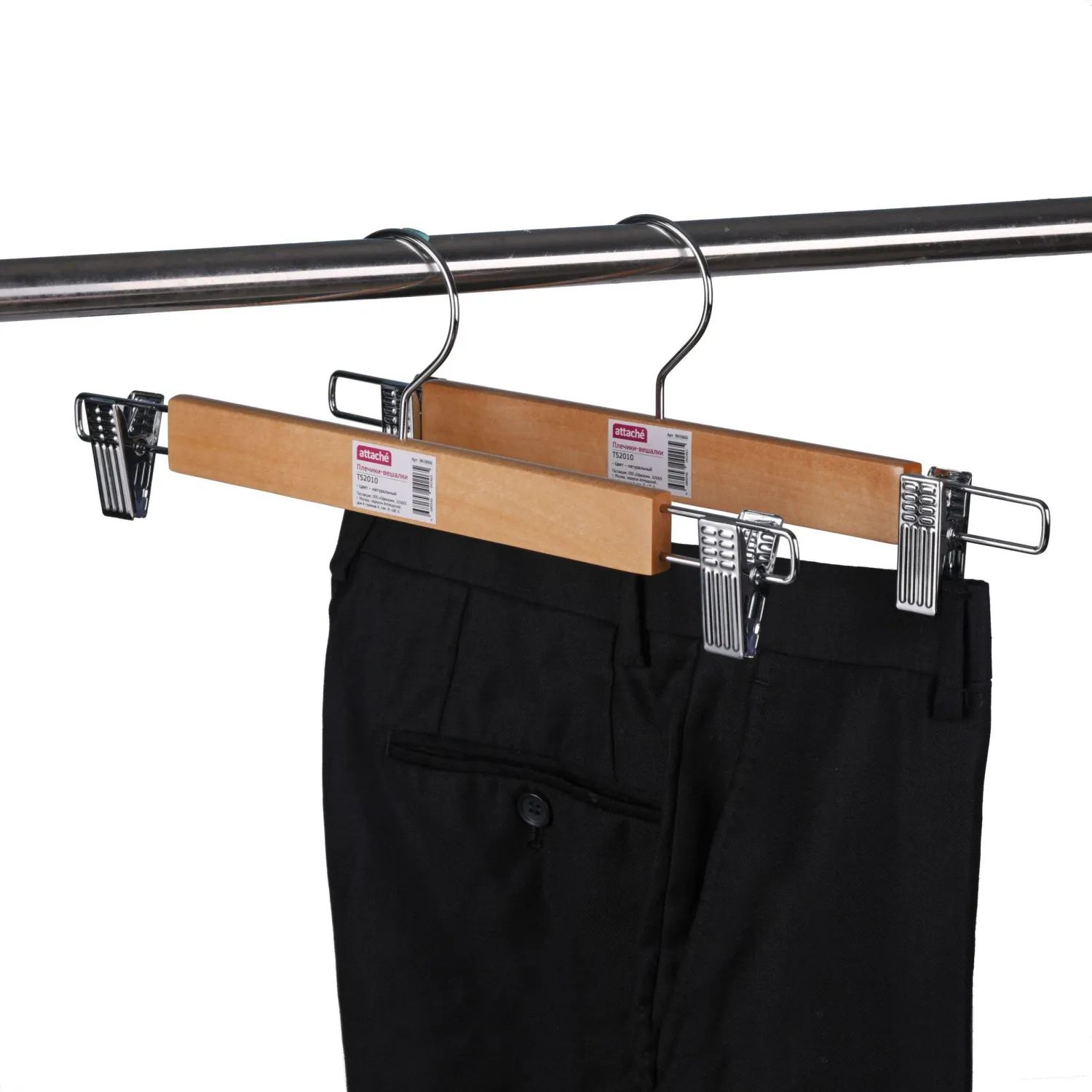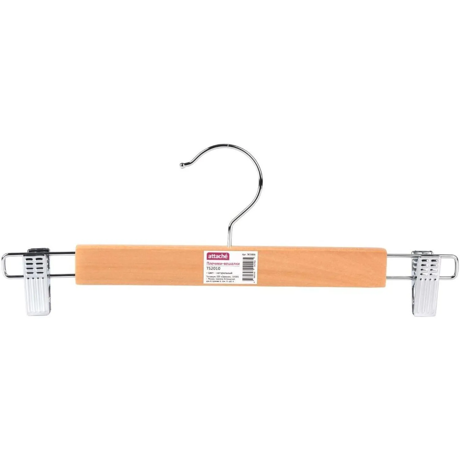 Вешалка-плечики универсального размера Attache с металлическими клипсами для юбок и брюк любого размера. Изготовлена из прочного дерева анис, с лакированным покрытием. Имеет металлический хромированный крюк.