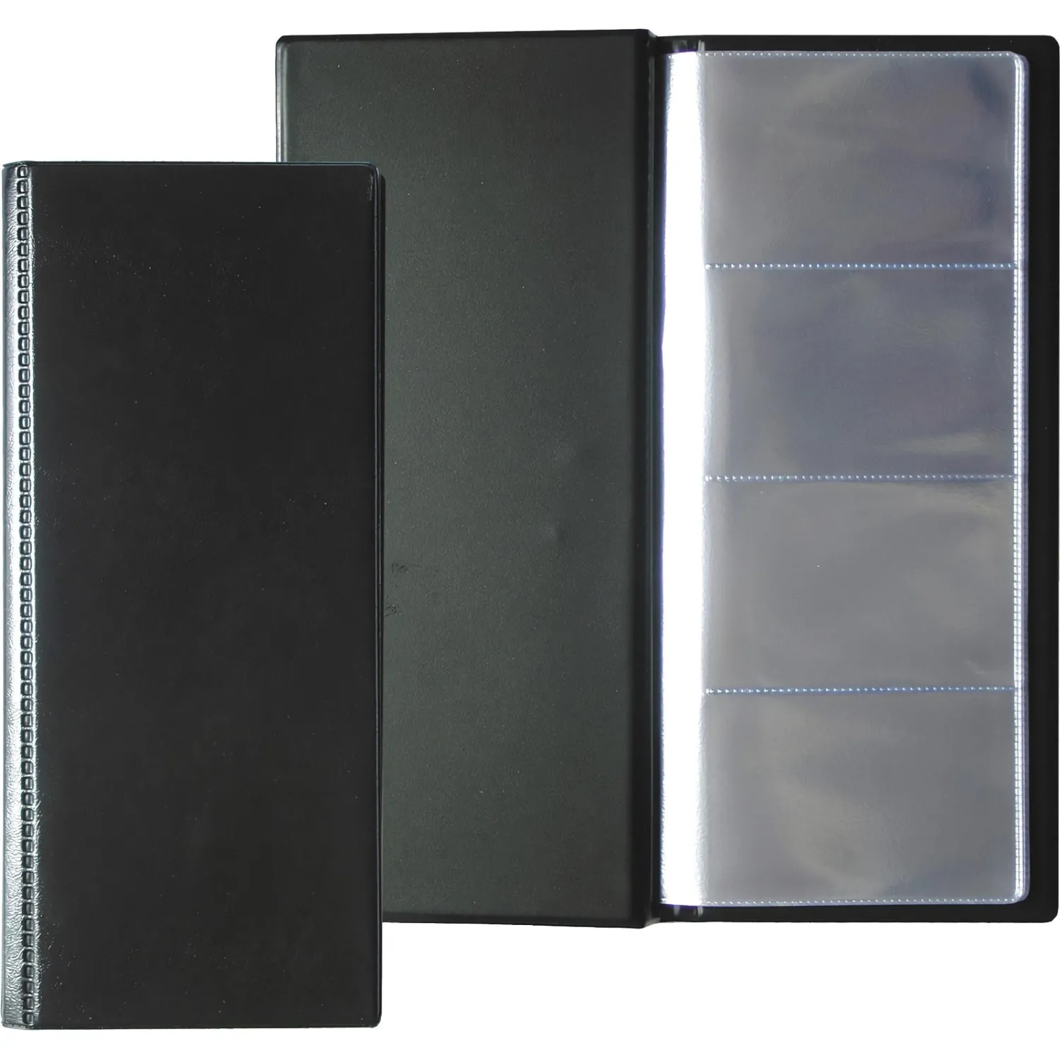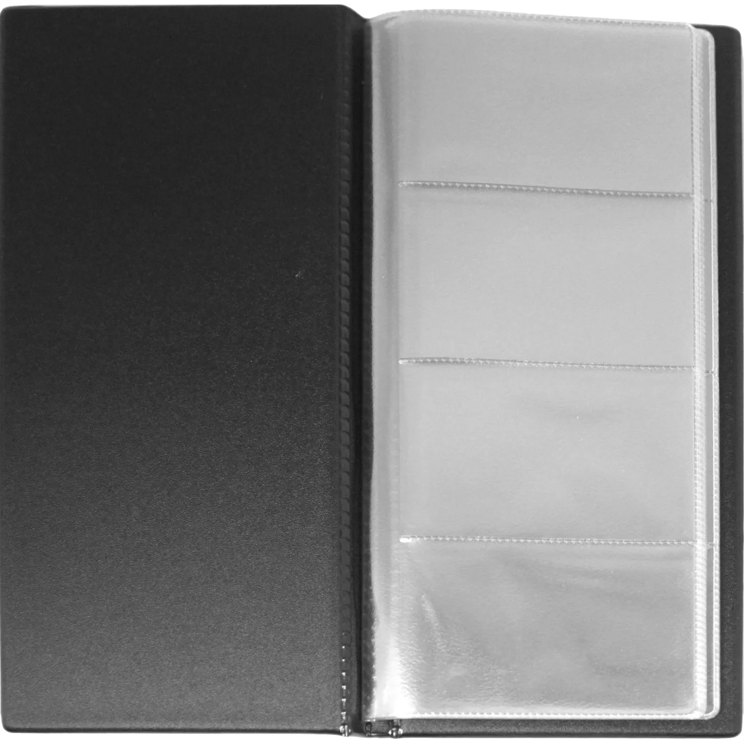 Визитница Attache изготовлена из ПВХ высокого качества черного цвета, размер — 110×250 мм. Имеет внутренний блок на 96 визиток. Размер кармашков под визитки: 60×87 мм. Каждый лист вмещает четыре визитки или банковские карты стандартного размера. Карманы для визиток изготовлены из прозрачного полипропилена. На обложку визитницы можно нанести логотип любым способом тиснения. Каждое отделение предполагает возможность хранения 2-х визиток.