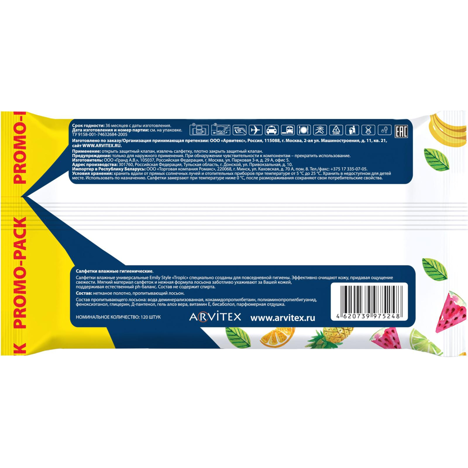 Влажные салфетки освежающие Emily Style Tropic 100+20 штук в упаковке
