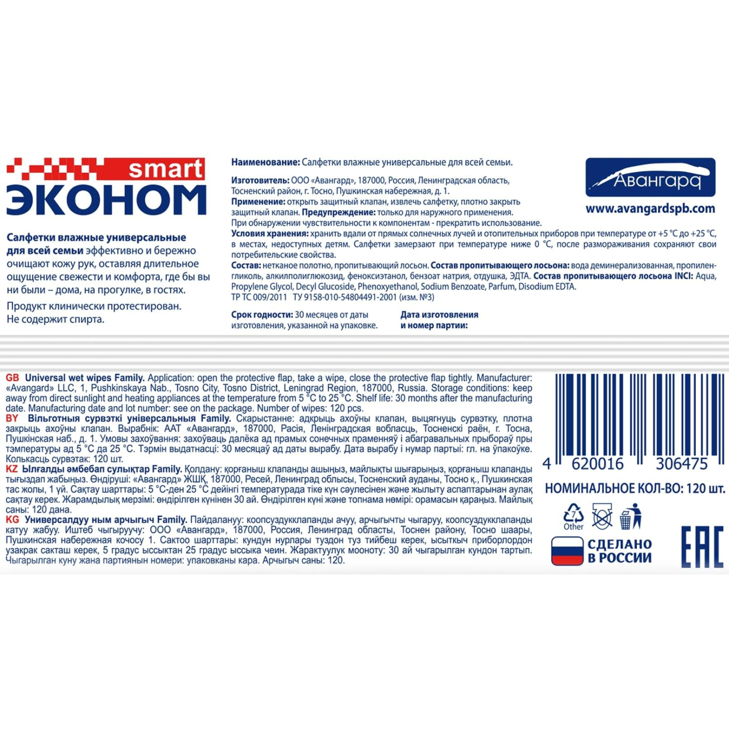 О товаре «Салфетки влажные Эконом smart универсальные флоупак с жёстким клапаном (120 листов в пачке)»
