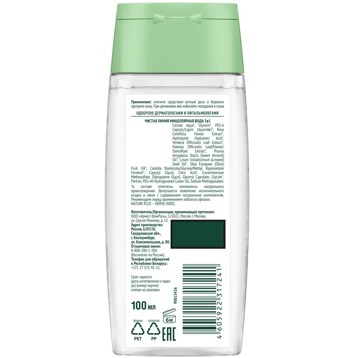 О товаре «Мицеллярная вода Чистая Линия 3 в 1 смягчающая для всех типов кожи 100 мл»