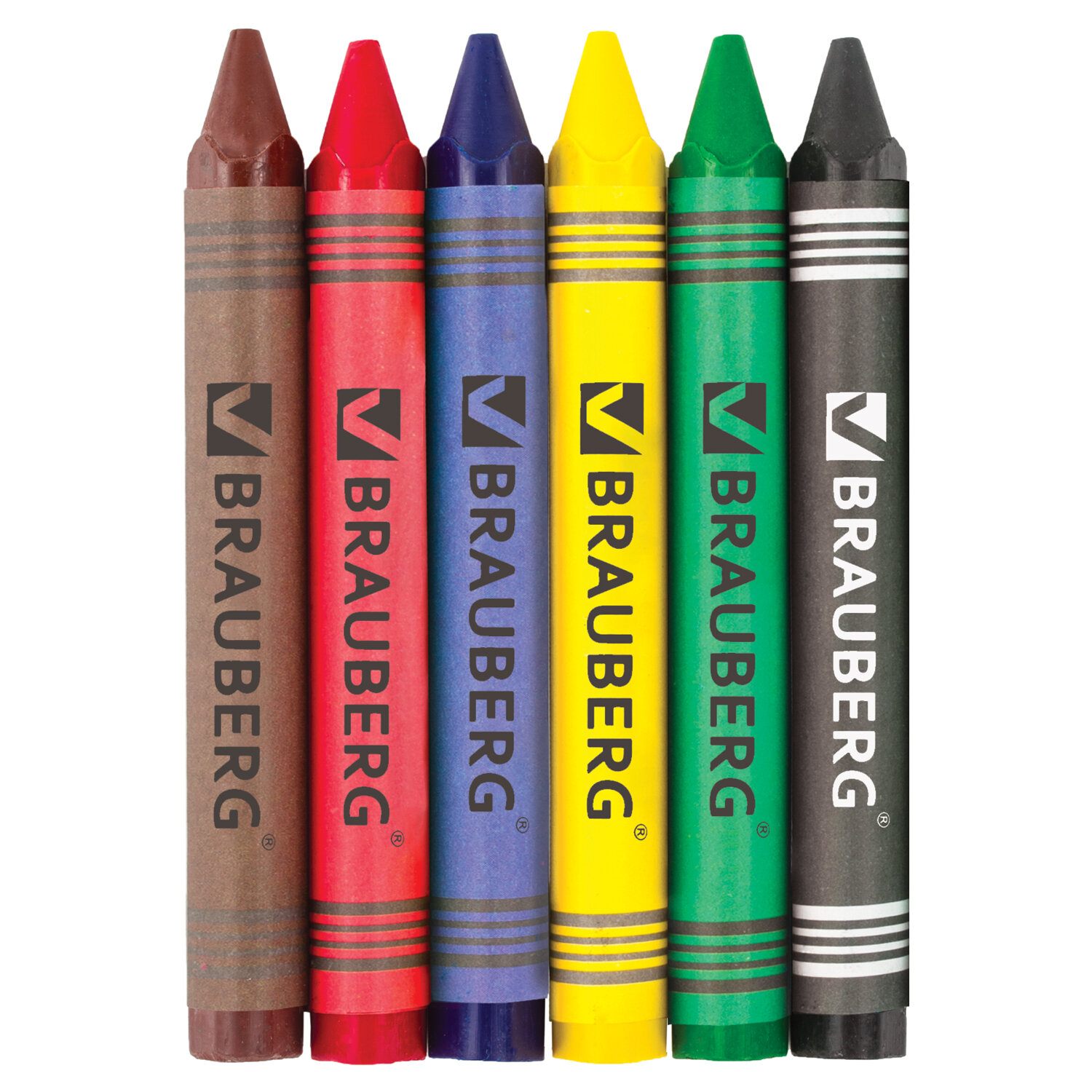 Восковые мелки трехгранные утолщенные BRAUBERG "АКАДЕМИЯ", НАБОР 6 цветов, 227286