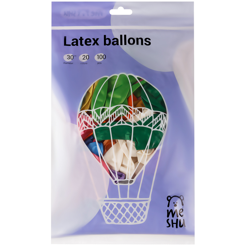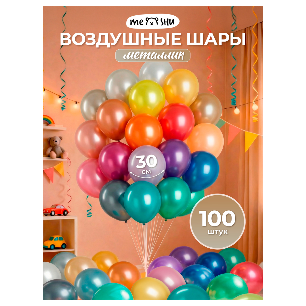 О товаре «Воздушные шары, 100шт., М12/30см, MESHU, металлик, 20 цветов ассорти»