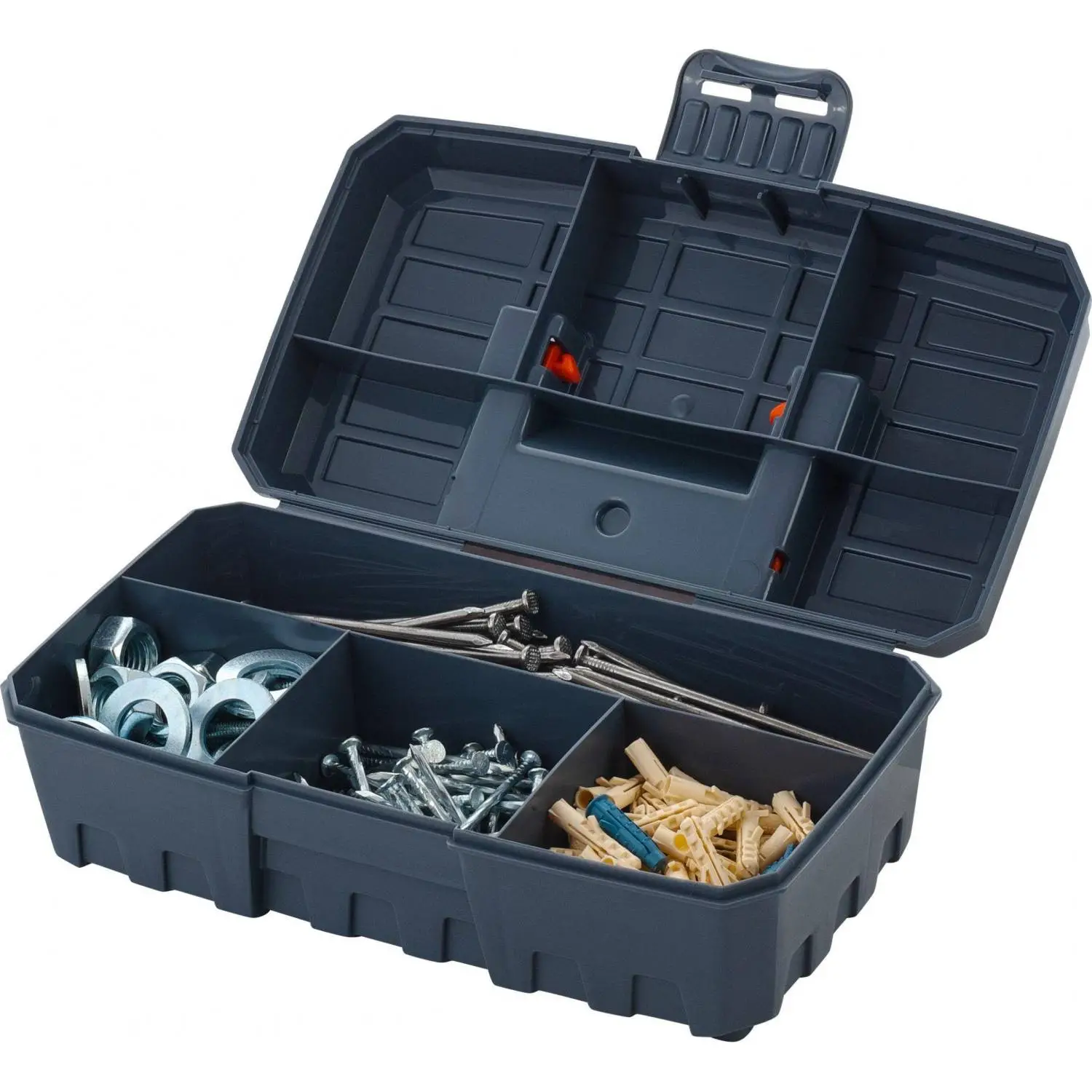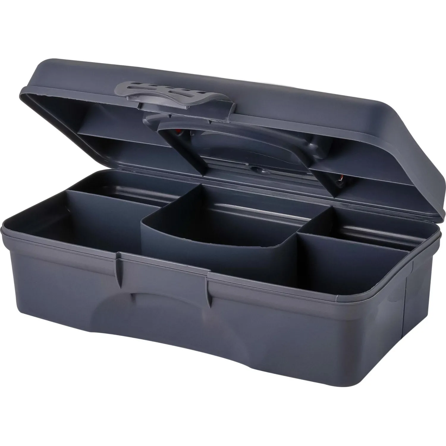 Этот ящик подходит для хранения рыболовных и швейных принадлежностей, коллекционирования, занятия хобби, а также может использоваться как аптечка. Он выполнен из прочного пластика серого цвета. Максимальная нагрузка на ящик — 2 кг, а его объём — 2.5 л. Ящик весит всего 0,165 кг.