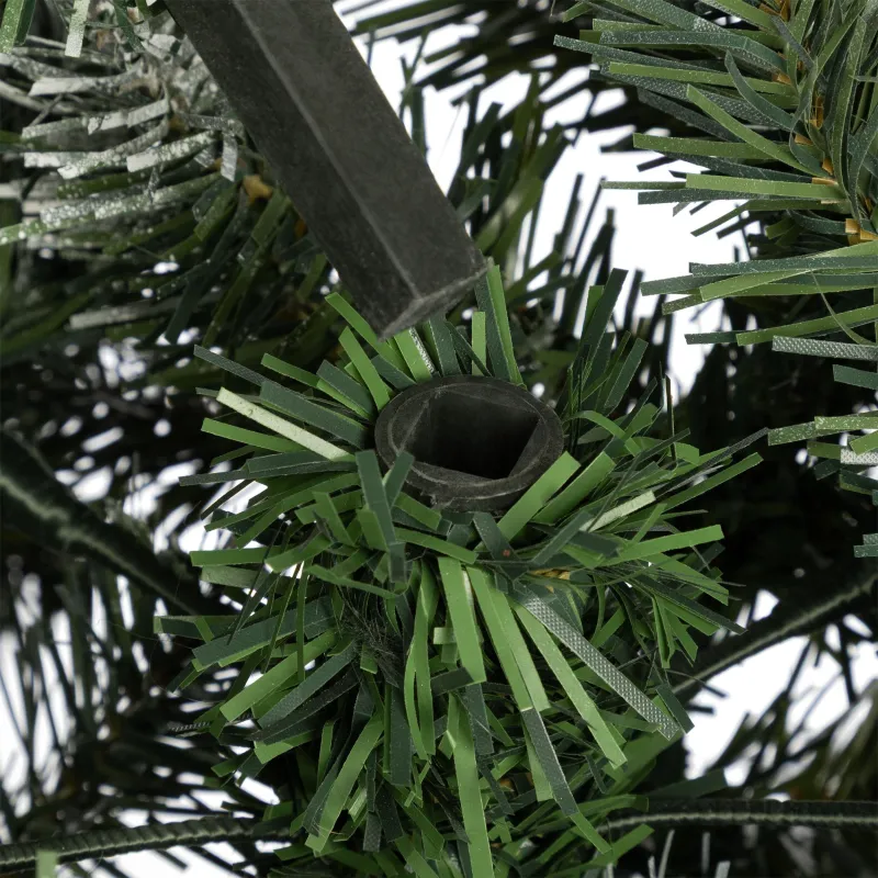 Модель включает 15 ярусов и 630 веток. Ствол выполнен из металлической трубки, обмотанной ПВХ для имитации хвои, что повышает прочность и устойчивость конструкции. Подставка металлическая, чёрного цвета, диаметром 40 см. Диаметр нижнего яруса составляет 102 см. Ветви закреплены на отгибной системе, что позволяет быстро собрать и расправить крону вручную.