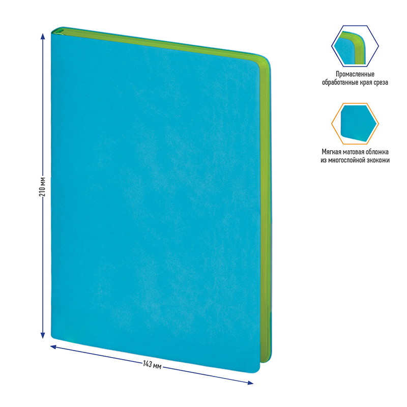 О товаре «Записная книжка А5 80л., кожзам, Berlingo "Fuze", цветной срез, бирюзовый»