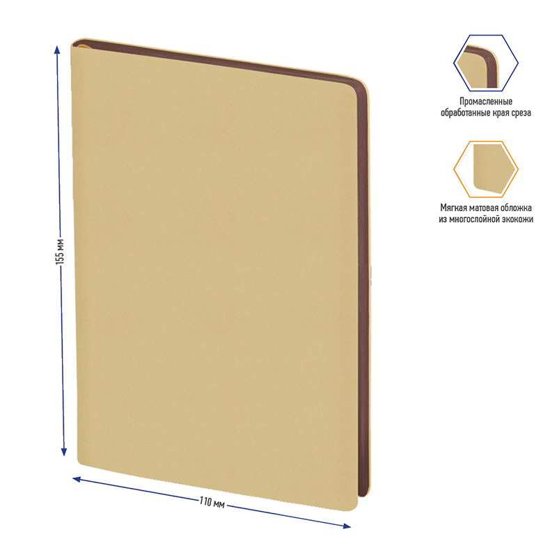 О товаре «Записная книжка А6 80л., кожзам, Berlingo "Fuze", цветной срез, бежевый»