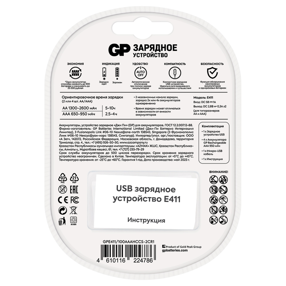 Компактное и удобное зарядное устройство GP Е411-100AAAHCCS-2CR1