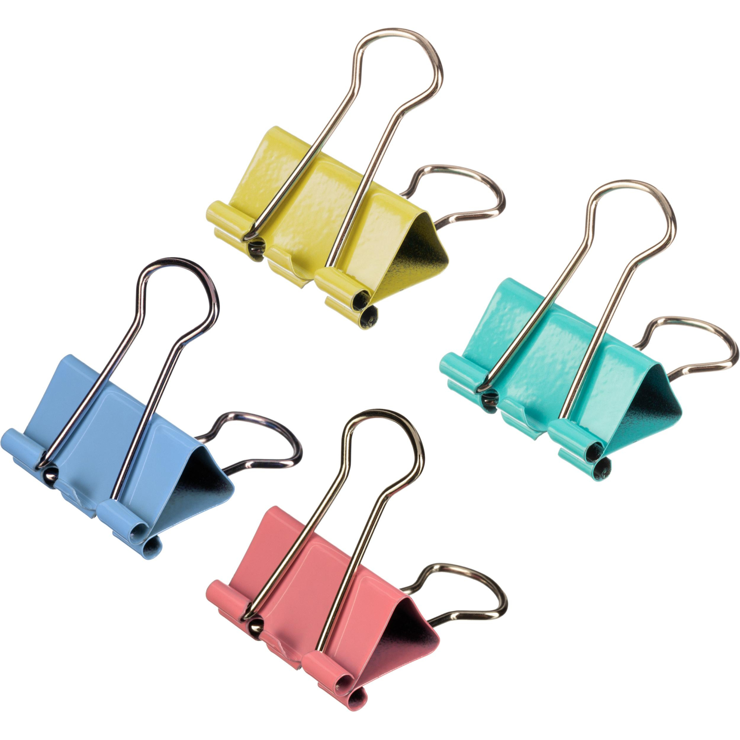 Металлические зажимы для бумаг Attache используются для скрепления документов без использования степлеров. Зажимы с цветным покрытием. Цвета зажимов в упаковке: желтый, синий, голубой, розовый. Размер зажима: ширина 25 мм, высота 36 мм, глубина закладки 18 мм. Позволяет скреплять до 100 листов плотностью 80 г/кв.м, не деформируя при этом бумагу.
