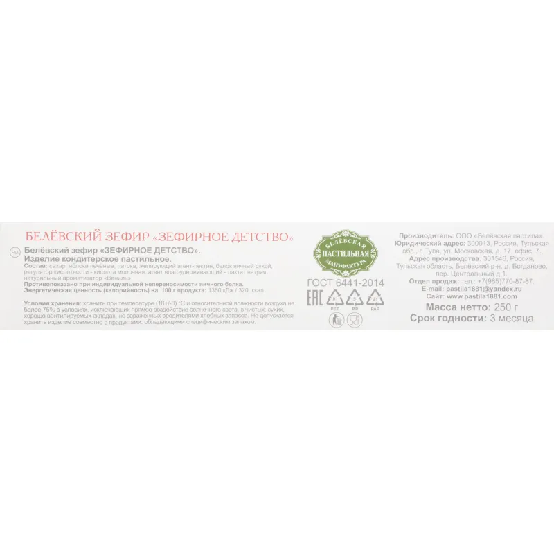 О товаре «Зефир Белевский Зефирное Детство 250 г»