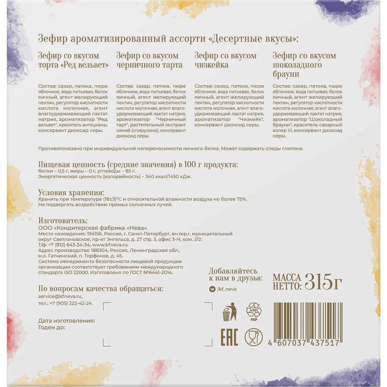 О товаре «Зефир DONI ZEFIRONI Нева десертные вкусы ароматизированный, 315г»