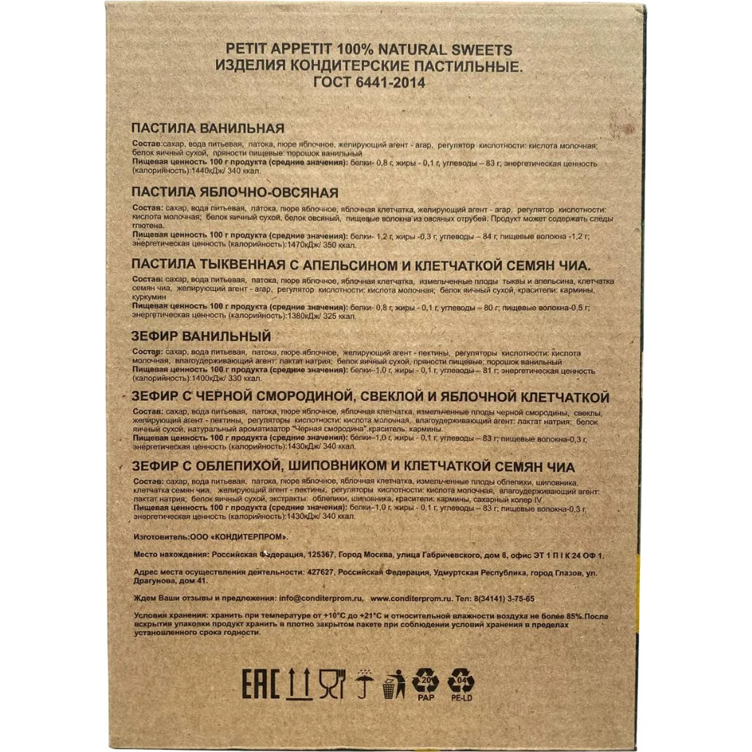 О товаре «Зефир Petit Appetit микс вкусов тв-короб, 380г»