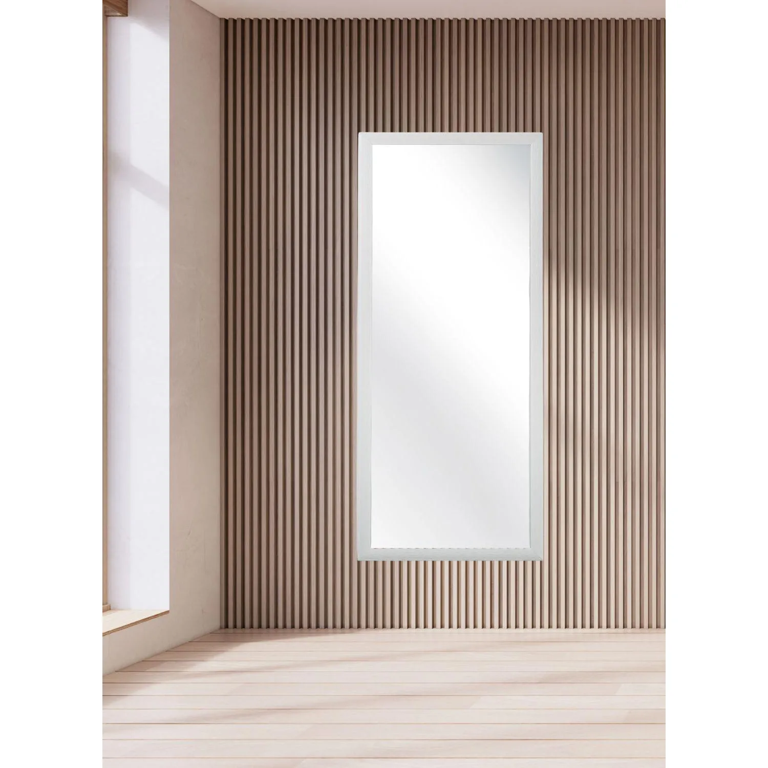 Зеркало настенное Комус Мебель НБ56 в багетной раме из влагостойкого вспененного полистирола. Зеркальное полотно марки Mirrox 3G влагостойкое, экологически чистое. Толщина составляет 4 мм. Размер 60×140 см. Зеркало обрамлено влагостойкой рамой из ПЛС белого цвета, ширина рамы — 40 мм. Упаковано в целлофан, в коробку из трёхслойного ударостойкого гофрокартона марки Т24. Крепежи к стене — скрытые пластины, позволяющие вешать зеркало как вертикально, так и горизонтально. В комплекте имеется дюбель-костыль.