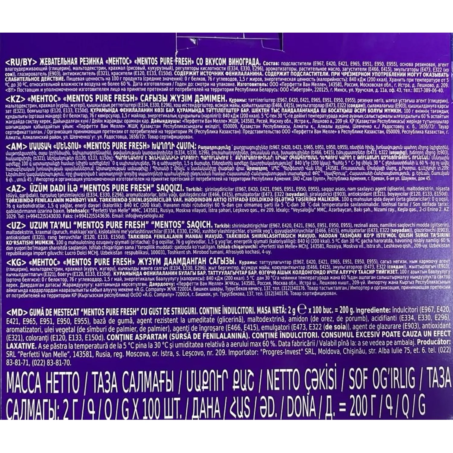 Жевательная резинка Mentos Pure Fresh Виноград (100 штук по 2 г)