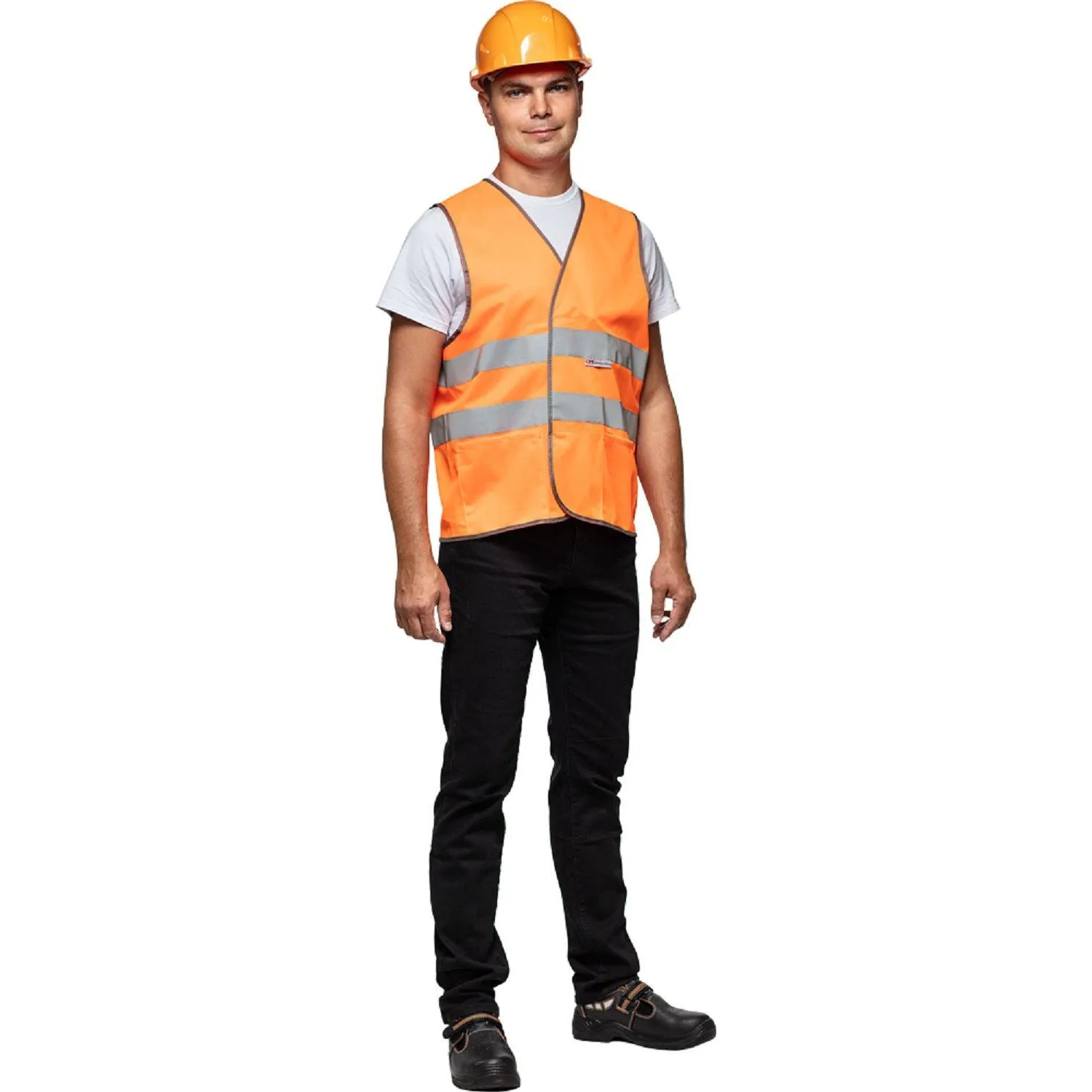 Жилет сигнальный Тип 1Т оранжевый с СОП размер XXXL (60-62). Сигнальный жилет Тип Т. Размер подходит для ношения поверх другой одежды, предназначен для взрослых мужчин и женщин. Основной цвет — оранжевый, с высокозаметными светоотражающими элементами, позволяющими видеть его как днем, так и ночью. Жилет рекомендован для использования работниками коммунальных служб, водителями, пешеходами, велосипедистами и другими участниками дорожного движения, особенно при ремонте дорог или работе в опасных зонах.