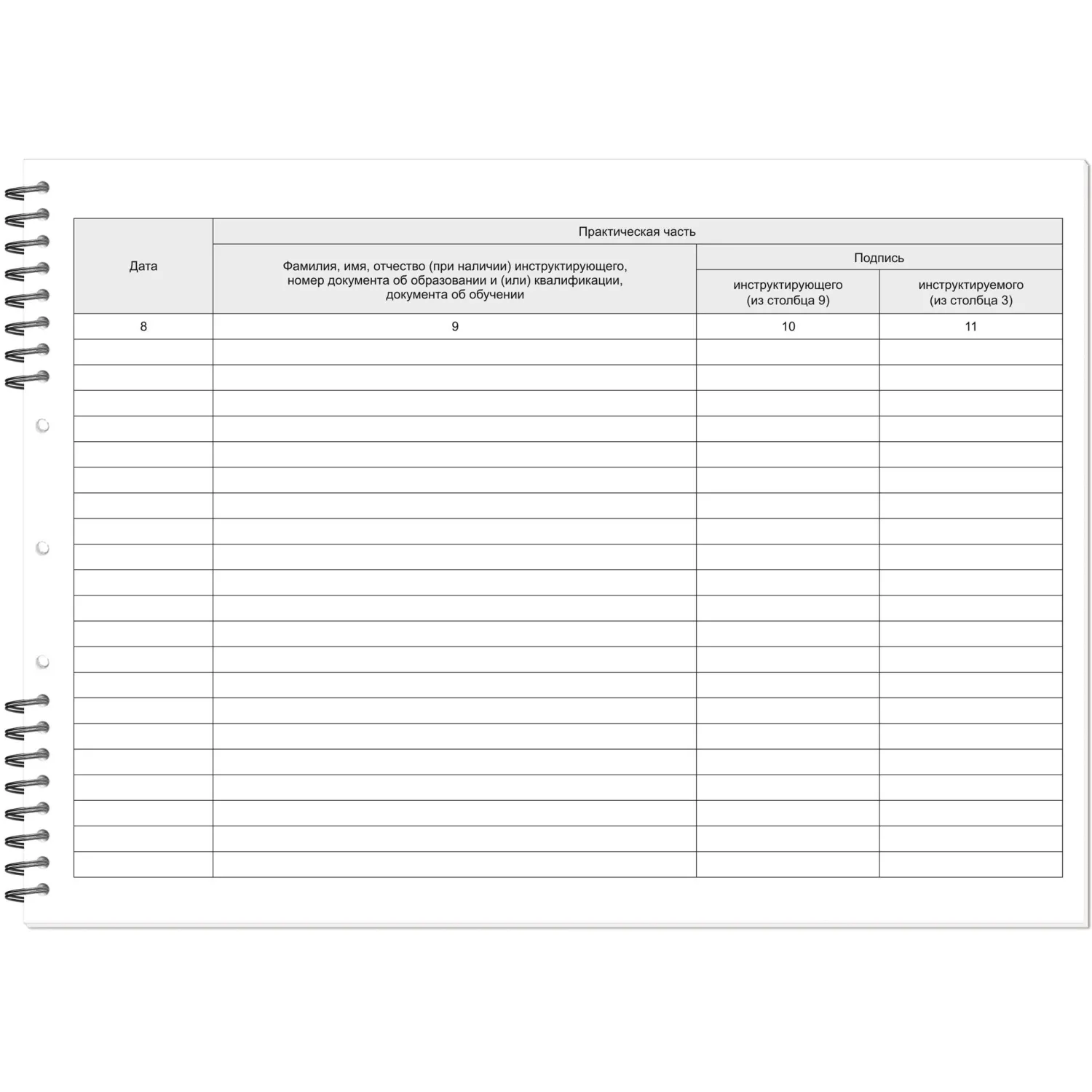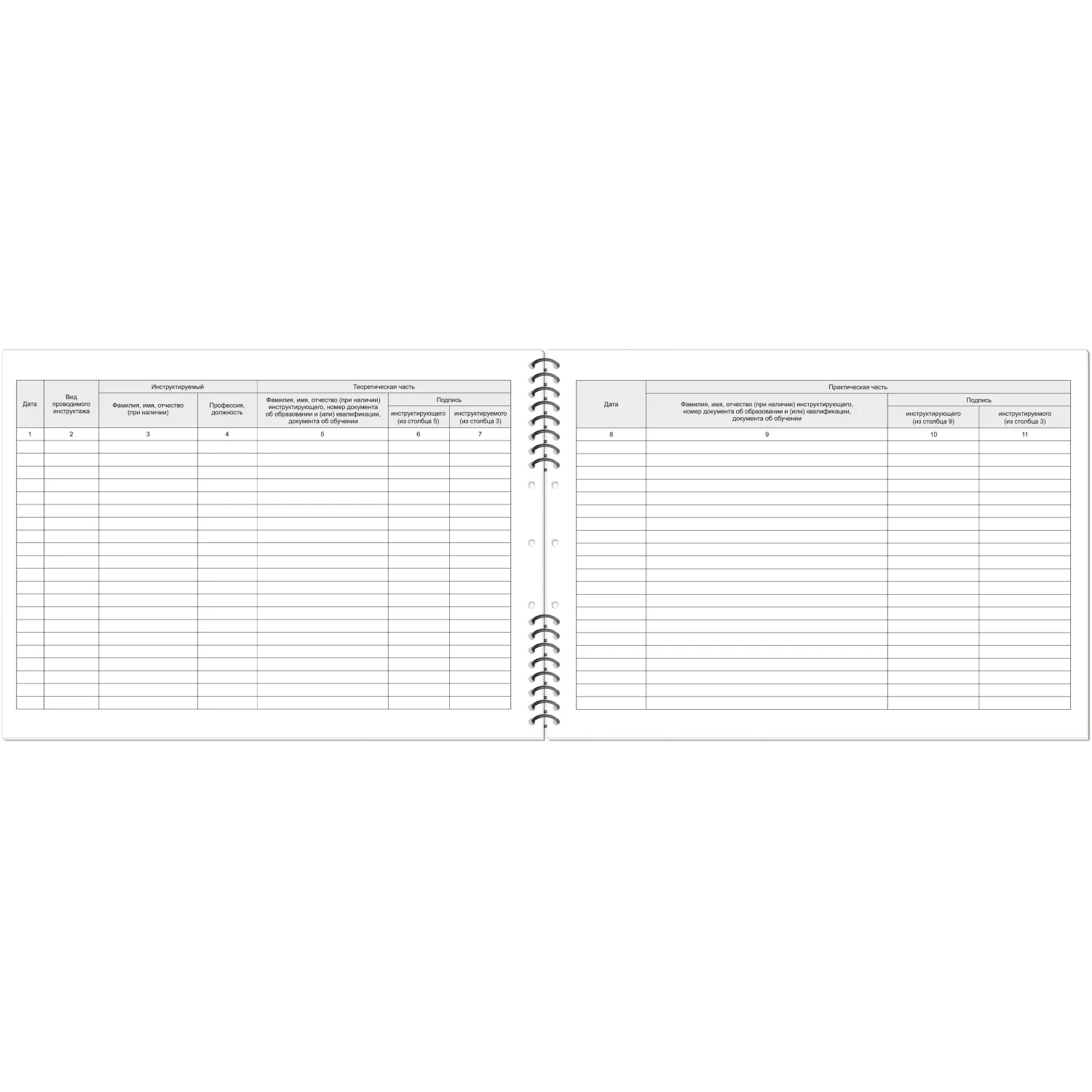 Журнал регистрации инструктажа по пожарной безопасности имеет формат А4. Подходит для использования на производстве, на предприятиях торговли, в офисах, в госучреждениях. Обложка выполнена из мелованного картона, подложка — из жесткого переплетного картона, что позволяет заполнять журнал . Внутренний блок состоит из 50 листов офсетной бумаги. Журнал скреплен с помощью спирали. В журнале предусмотрена перфорация и шнуровка.Журнал содержит обновленную форму согласно Приказу МЧС РФ от 18.11.2021 N 806.