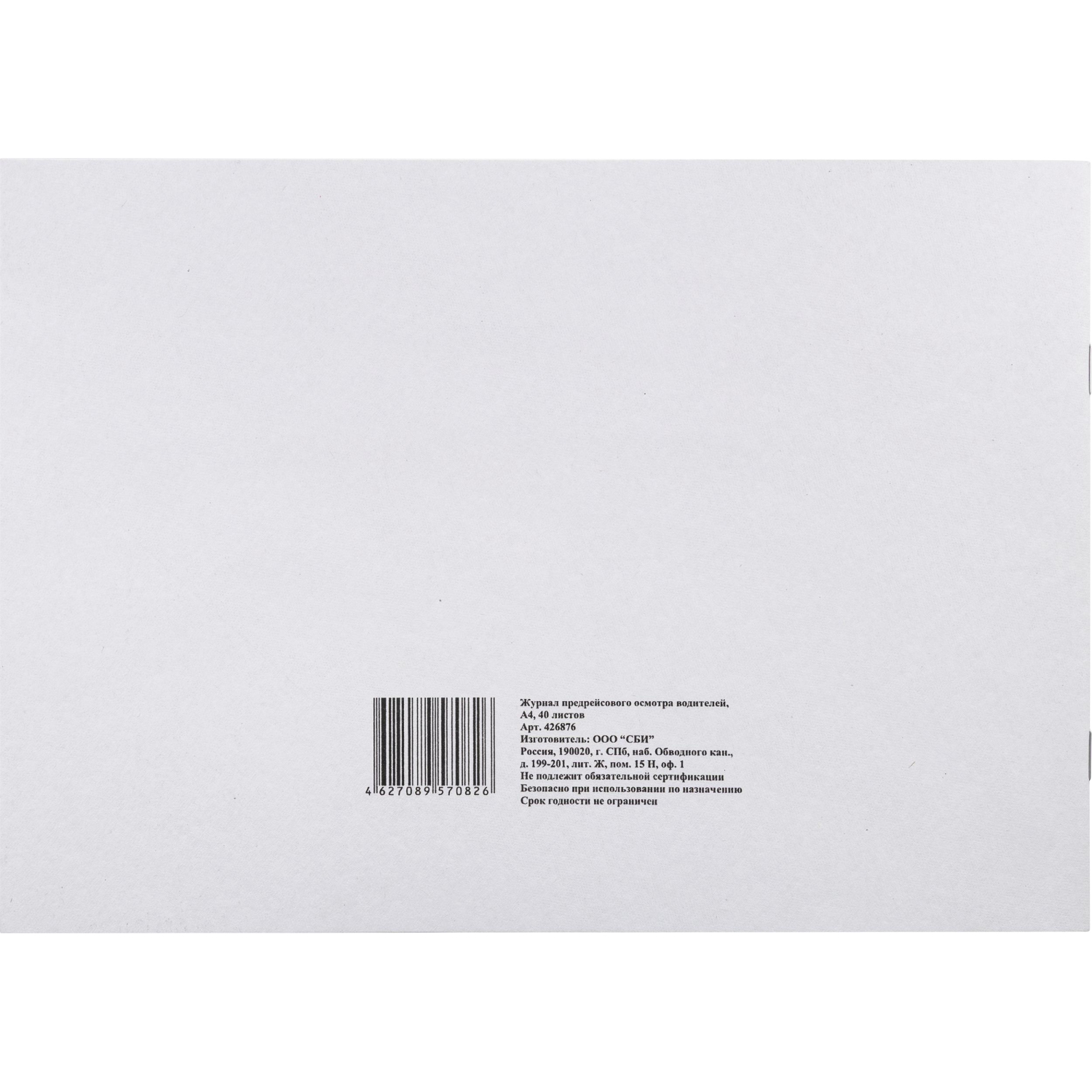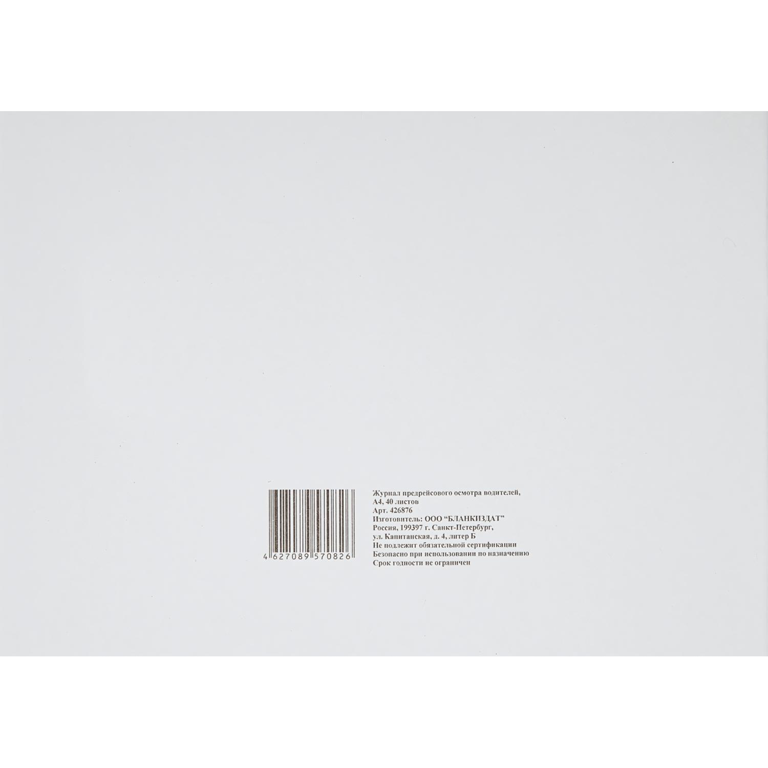 О товаре «Журнал предрейсового осмотра водителей (40 листов, скрепка, обложка картон)»