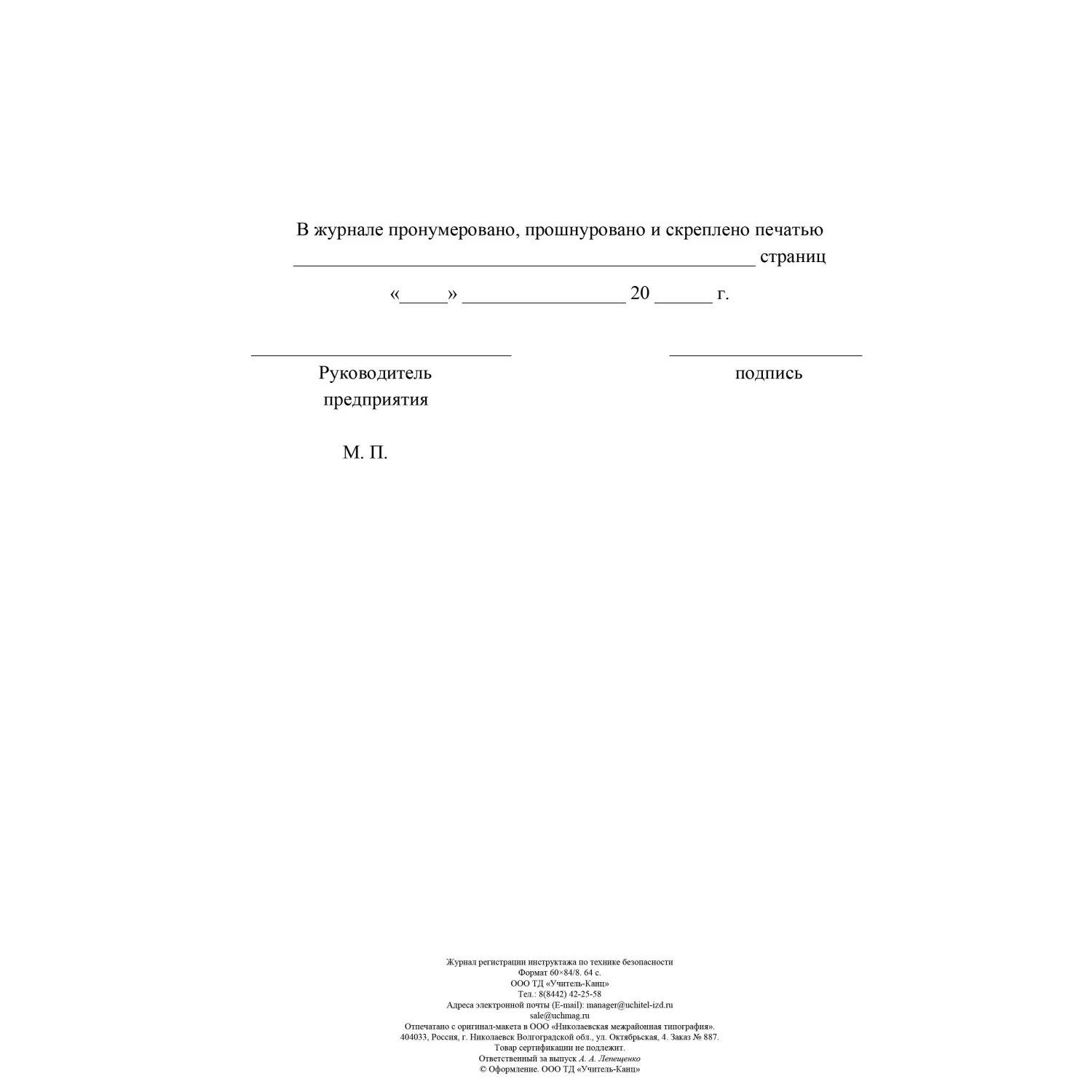 Журнал предназначен для соблюдения законодательства РФ. Соответствует ГОСТ