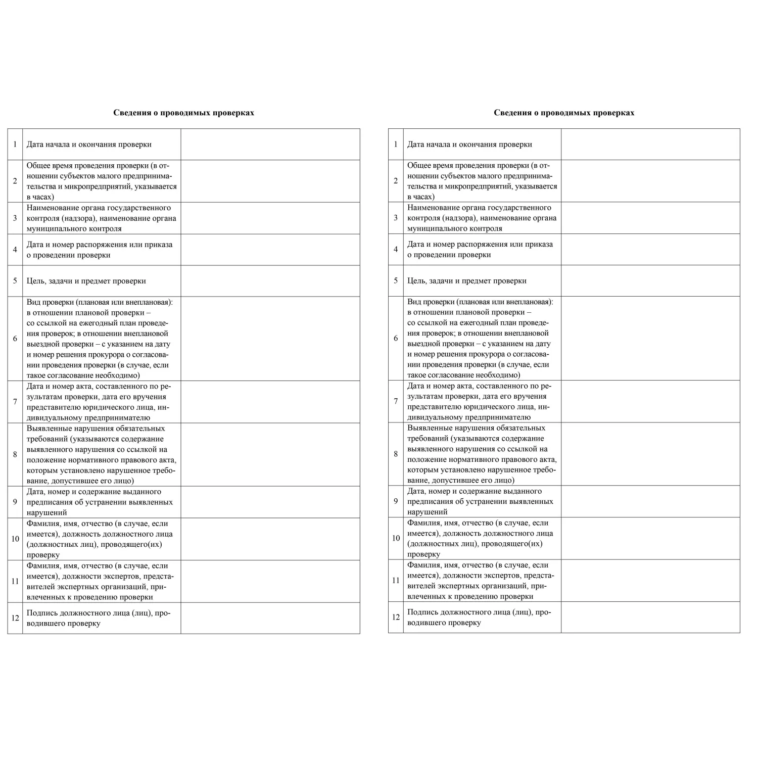 Утверждено Приказом Министерства экономического развития РФ от 30 апреля 2009 г. № 141 'О реализации положений Федерального закона 'О защите прав юридических лиц и индивидуальных предпринимателей при осуществлении государственного контроля (надзора) и муниципального контроля'. Формат А4. Мягкий переплет, скрепка. Внутренний блок — писчая бумага, 32 листа. На обложке указываются сроки начала и окончания регистрации.