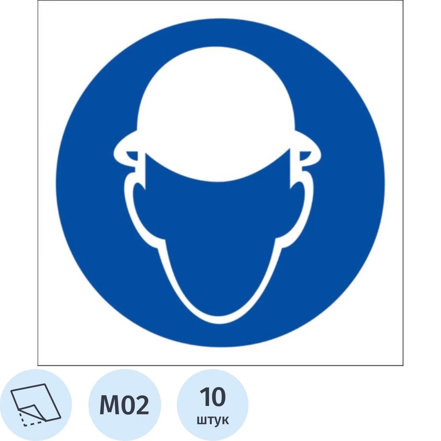 О товаре «Знак безопасности M02 Работать в защитной каске, пленка 200х200 10шт/уп»
