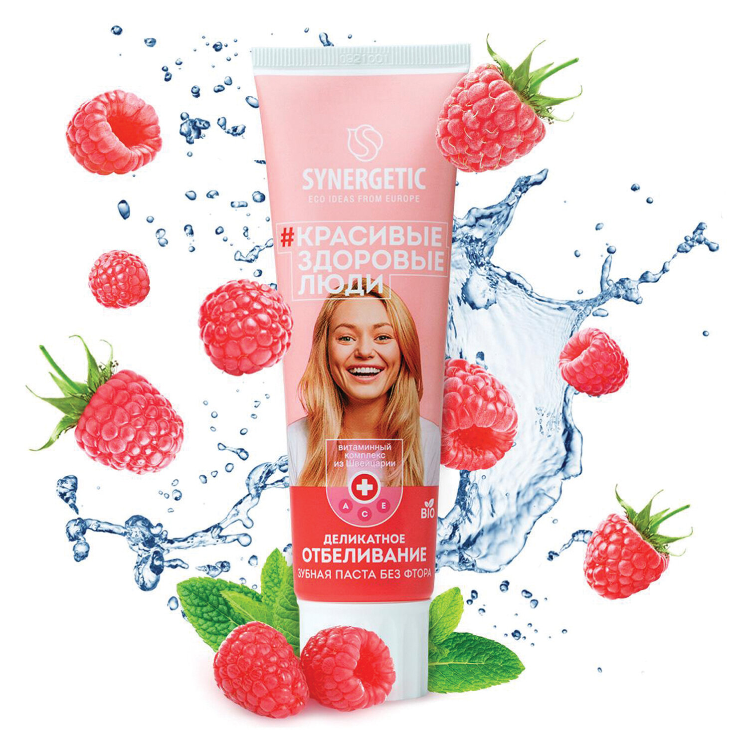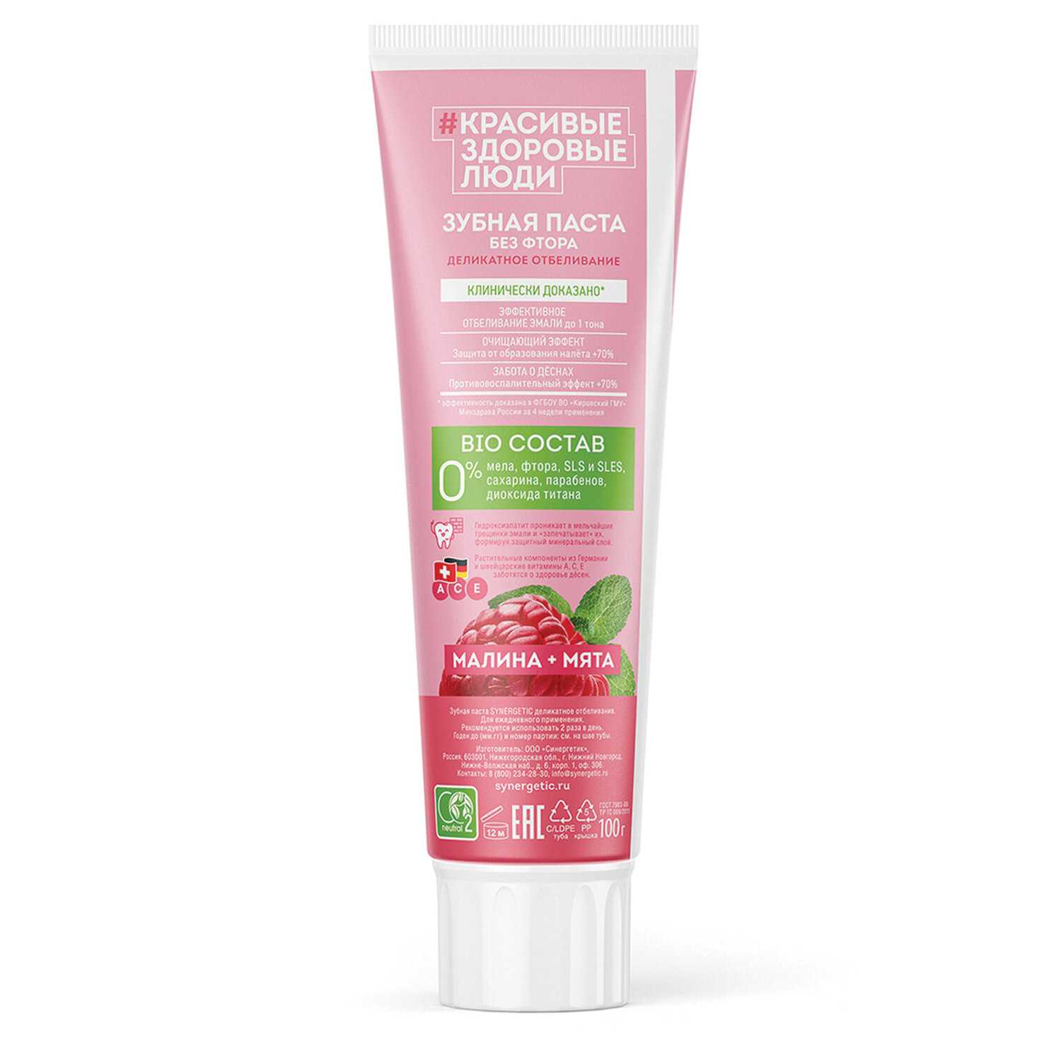 О товаре «Зубная паста 100 г, SYNERGETIC "Деликатное отбеливание", малина и мята, 201003»