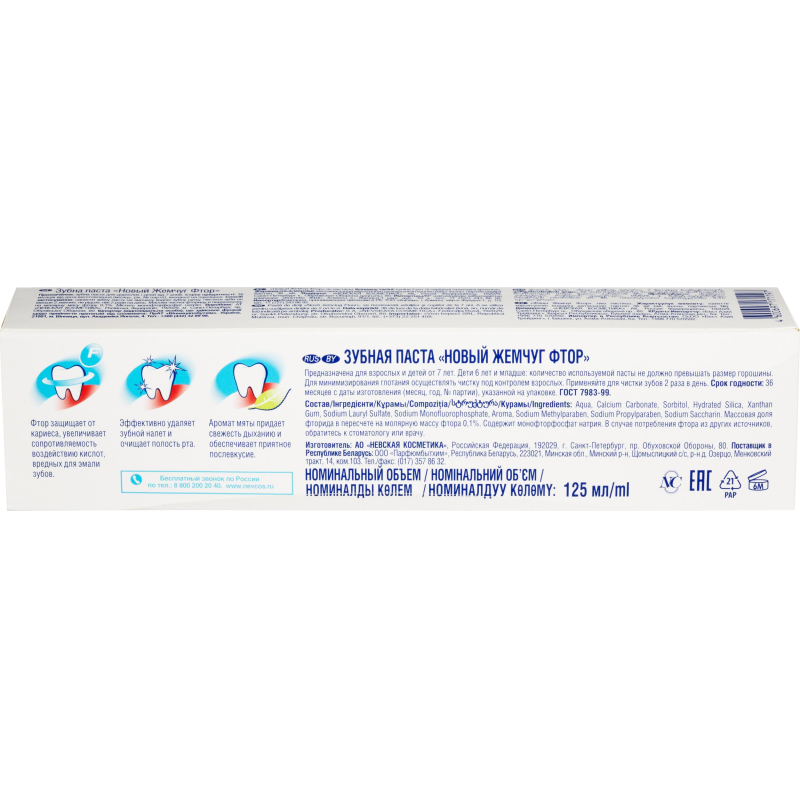 О товаре «Зубная паста Новый жемчуг Фтор 125 мл»