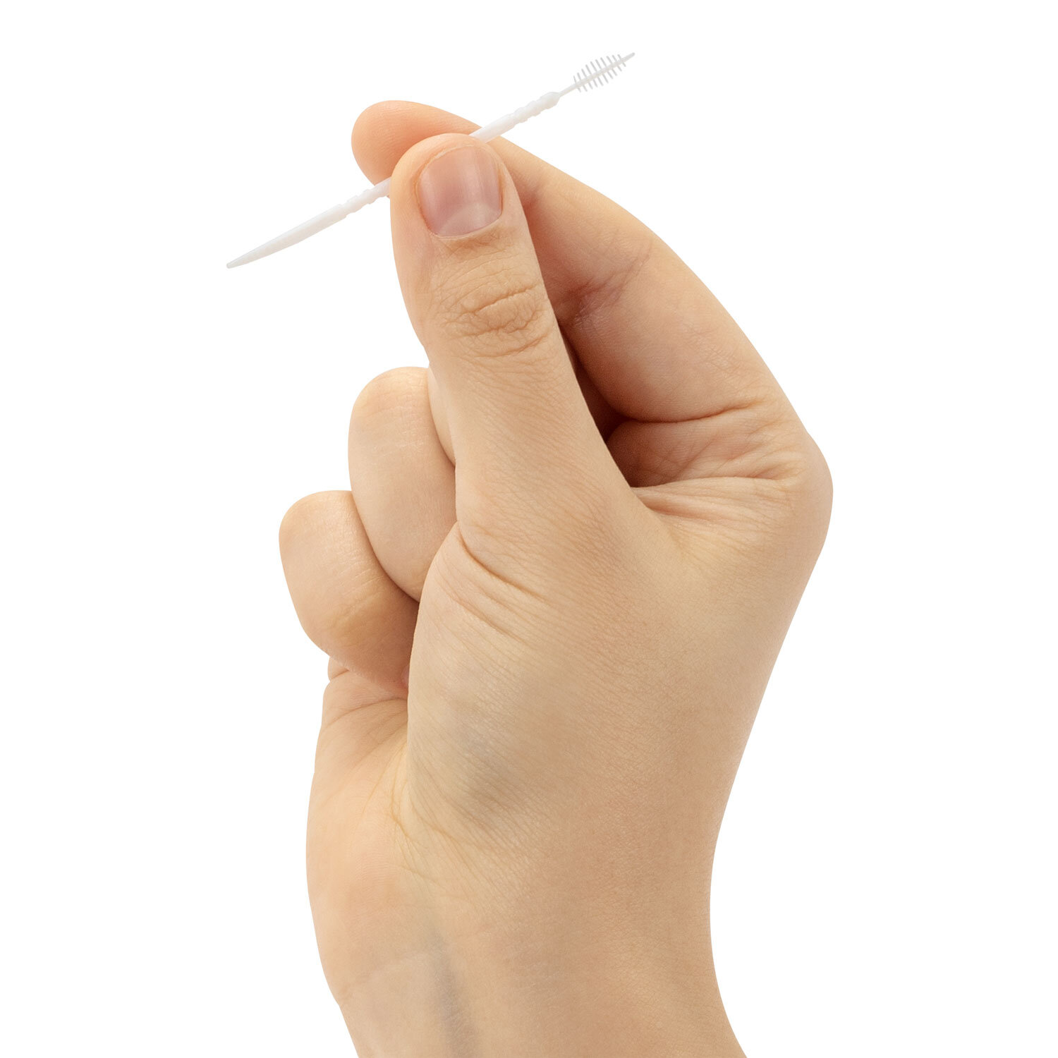 Совмещают в себе две функции: зубочистку и ёршик. С одной стороны имеют заостренный плоский конец, а с другой стороны – ёршик, который легко и бережно проходит между зубами.