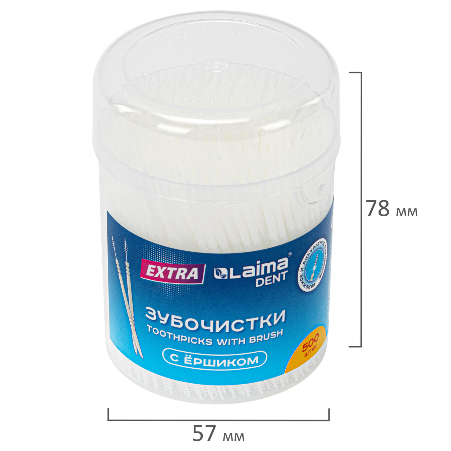 Зубочистки зубные, ёршики с щеточкой 500 шт., стакан, LAIMA DENT, 609401